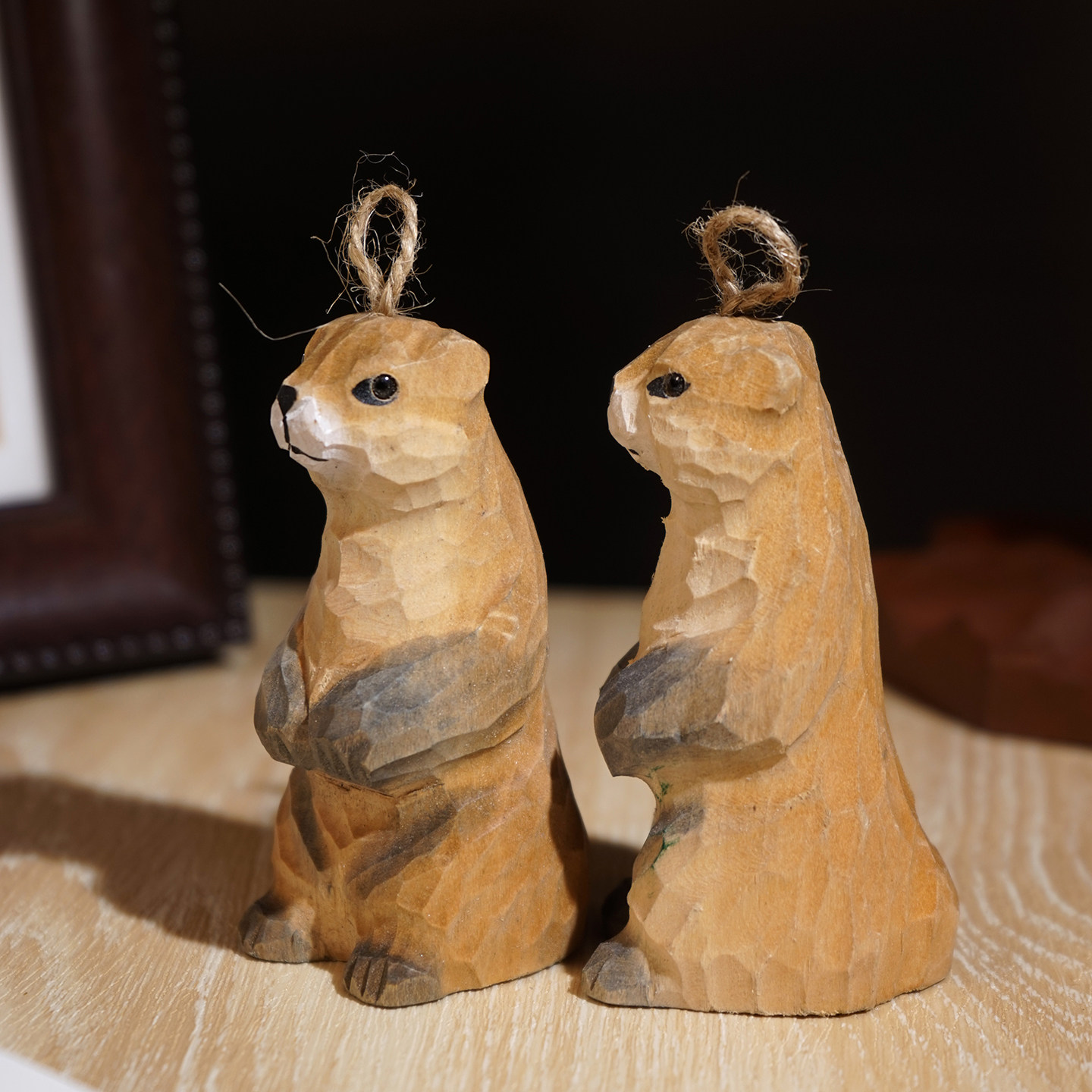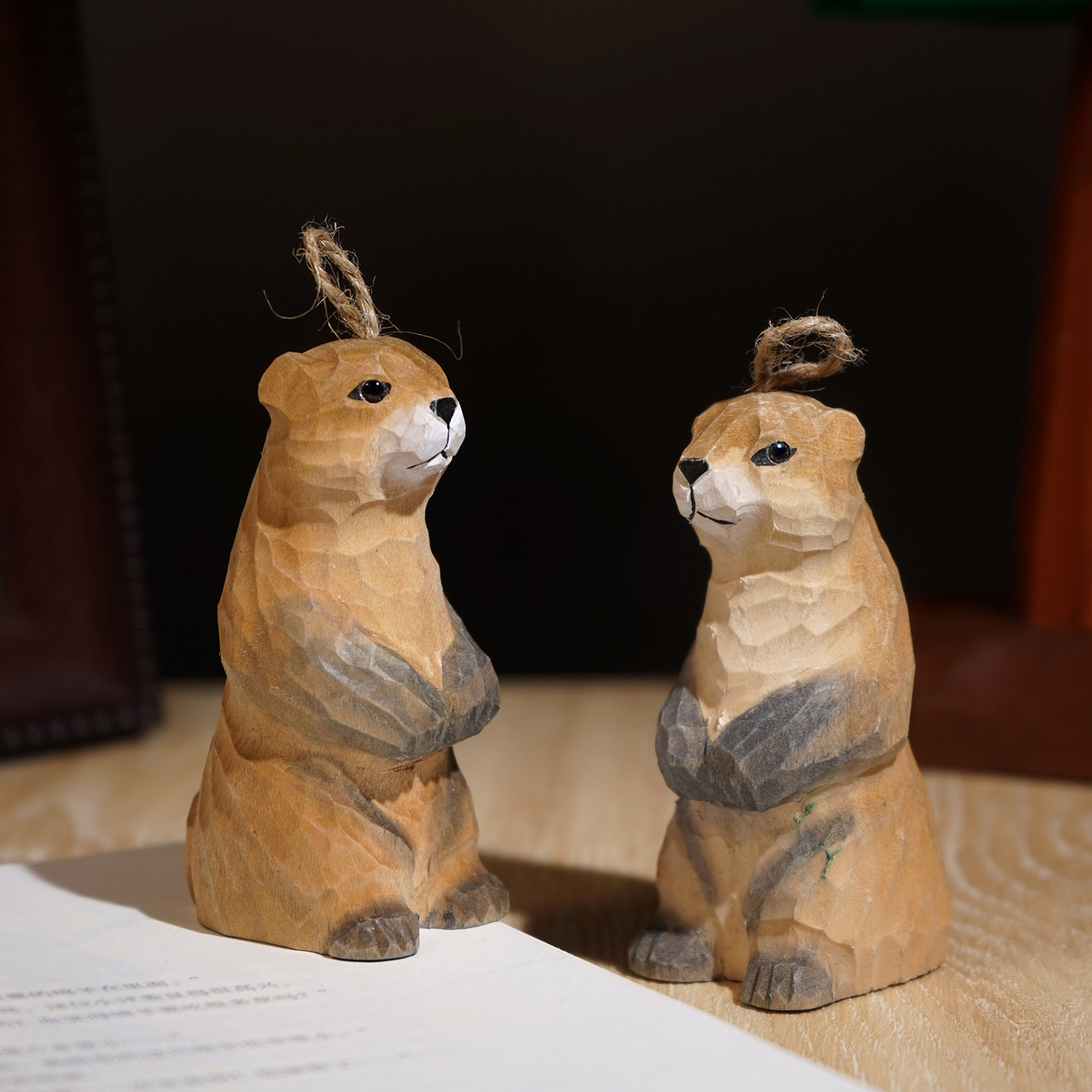 土拨鼠手工木雕小摆件动物挂饰工位电脑桌面书柜解压治愈装扮布置