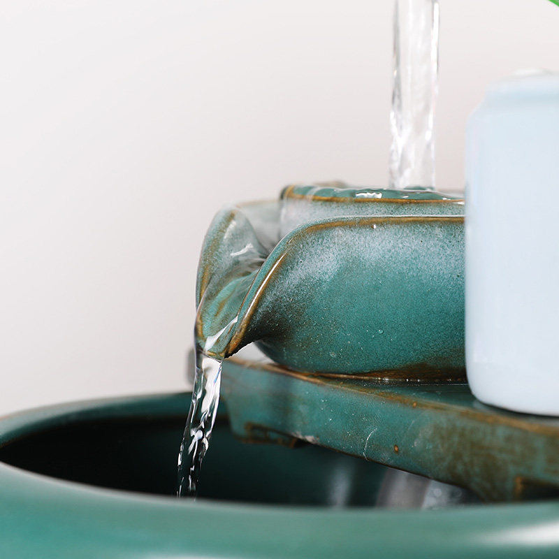 中式陶瓷鱼缸循环大号桌面喷泉家居装饰摆件流水器造景配件陶罐