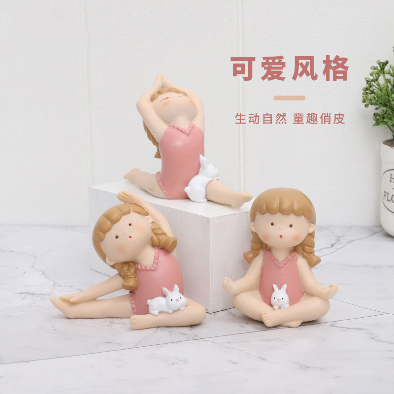 速发饰愈系可爱瑜件兔孩小摆伽桌面小饰品汽车装治闺蜜生日礼物