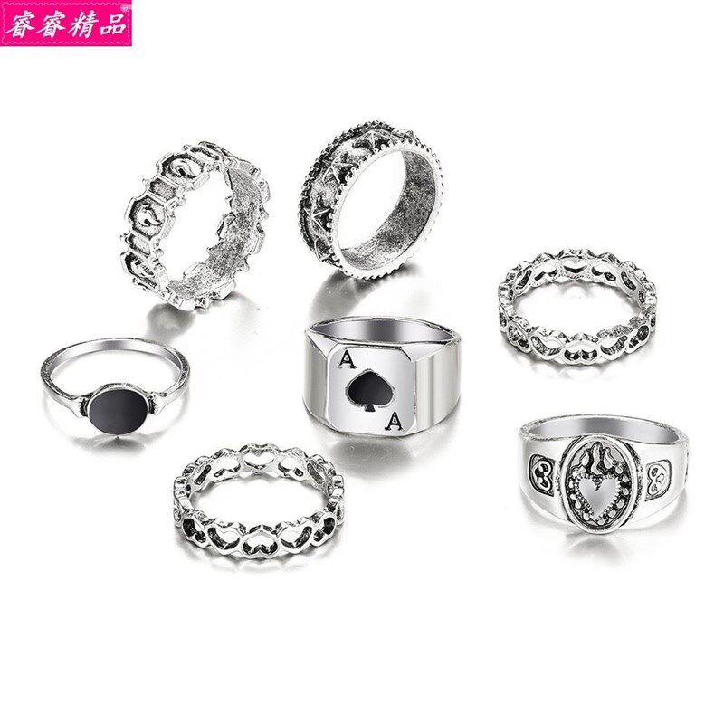7 pcs set personality European and American retro joint ring