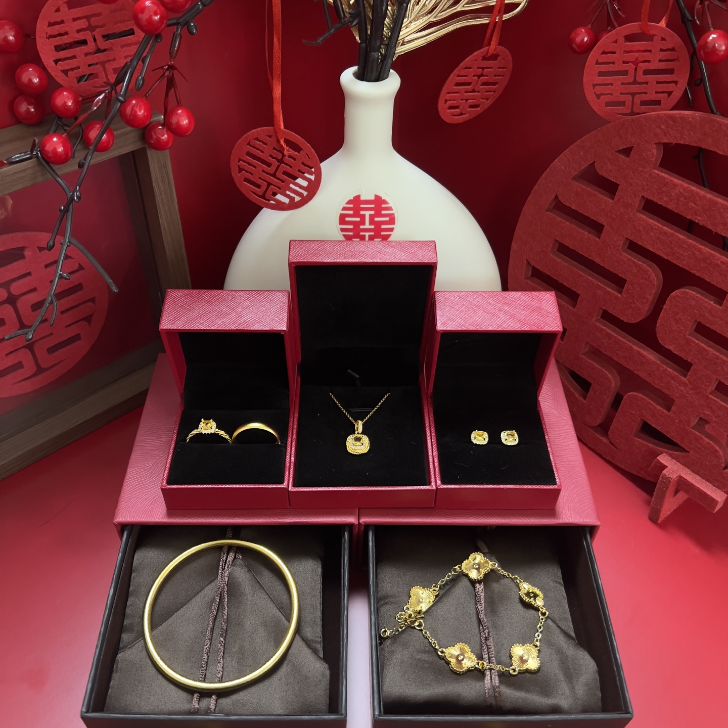 婚礼摆台道具订婚陪嫁假五金婚庆首饰摆件结婚仿真三金小方糖套装