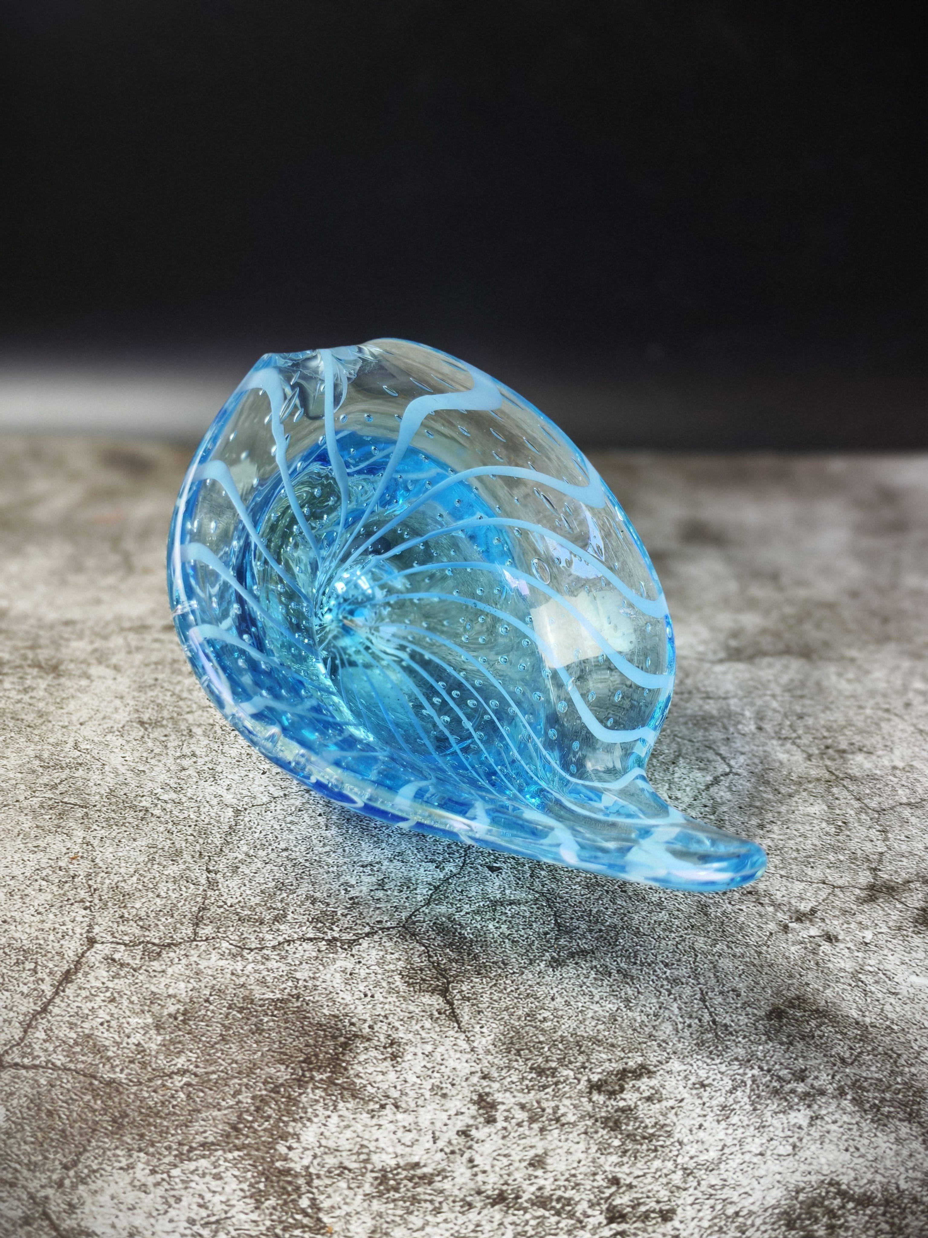 玄关花瓶摆件创意艺术蓝色海螺玻璃酒柜手工花器样板房轻奢软装饰