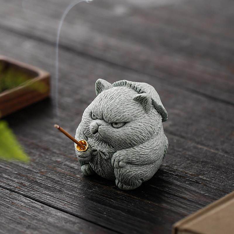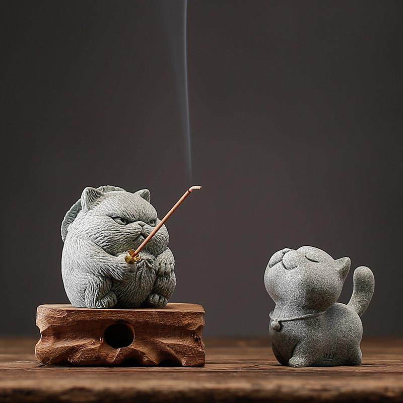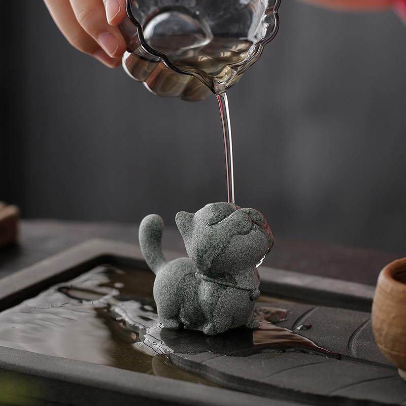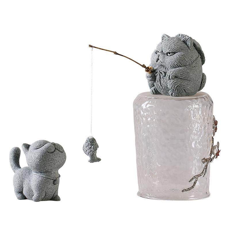 创意侠客小猫钓鱼茶宠摆件可爱小猫咪香插鱼缸盆栽造景桌面装饰品