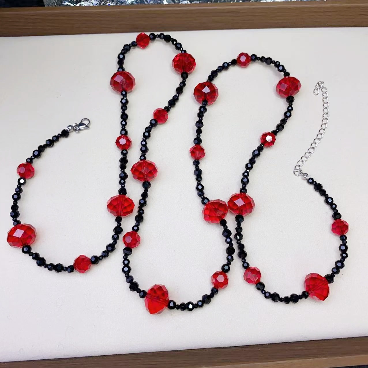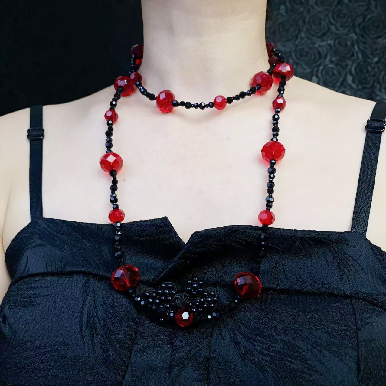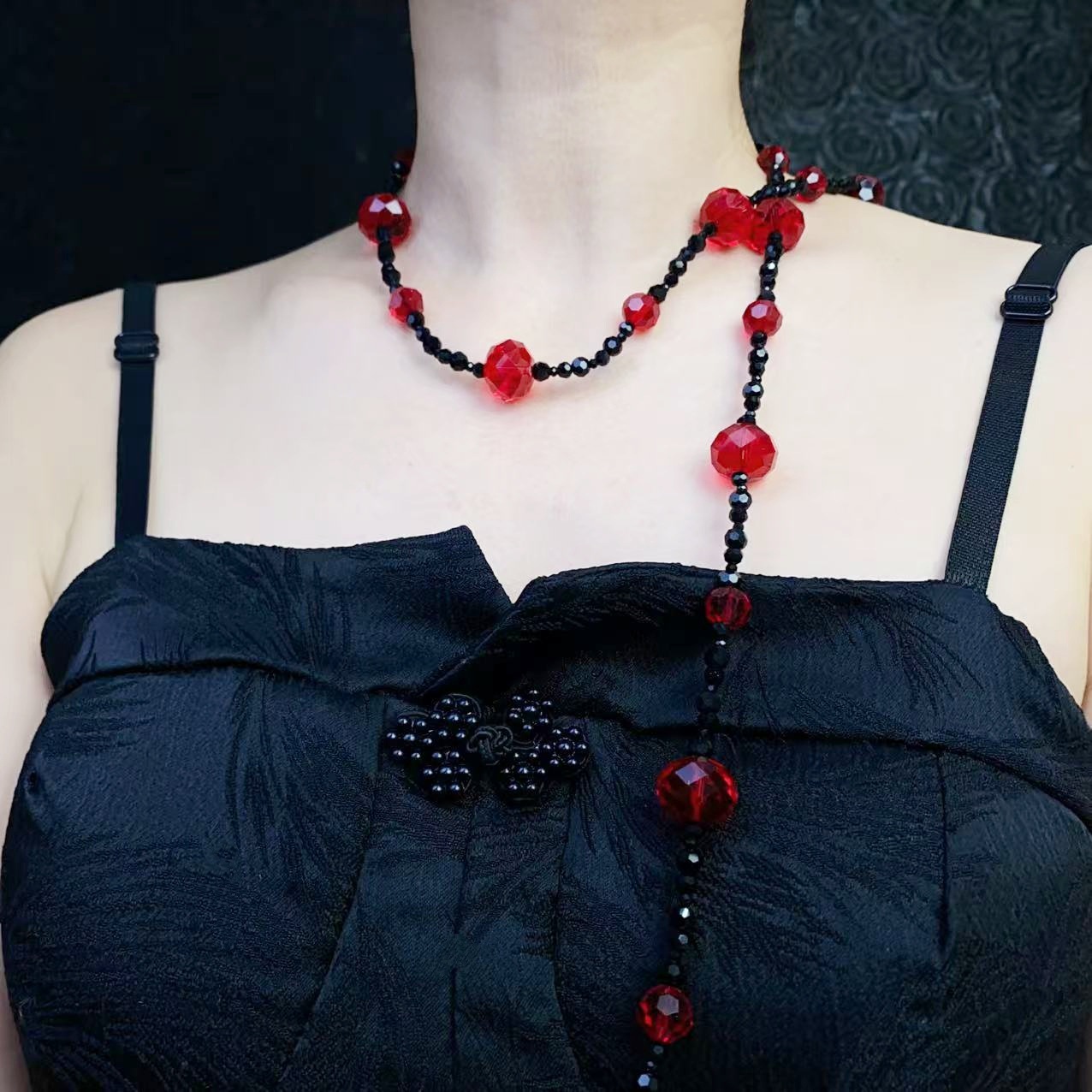 新款甜酷长款黑红锆石毛衣链气质时尚十字吊坠锁骨链项链百搭冷酷