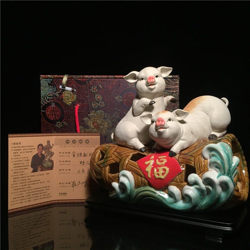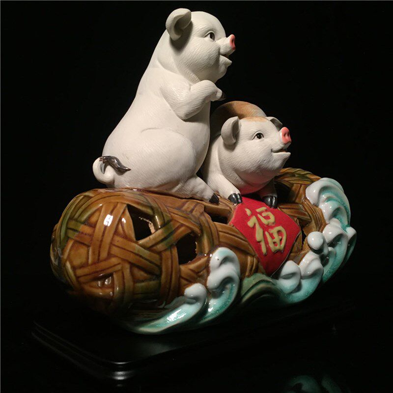 石湾公仔陶瓷猪年生肖摆件家居客厅玄关电视柜装饰品拜年商务礼品