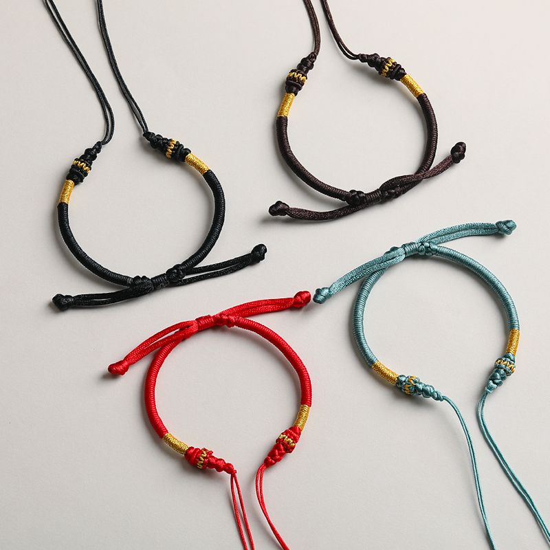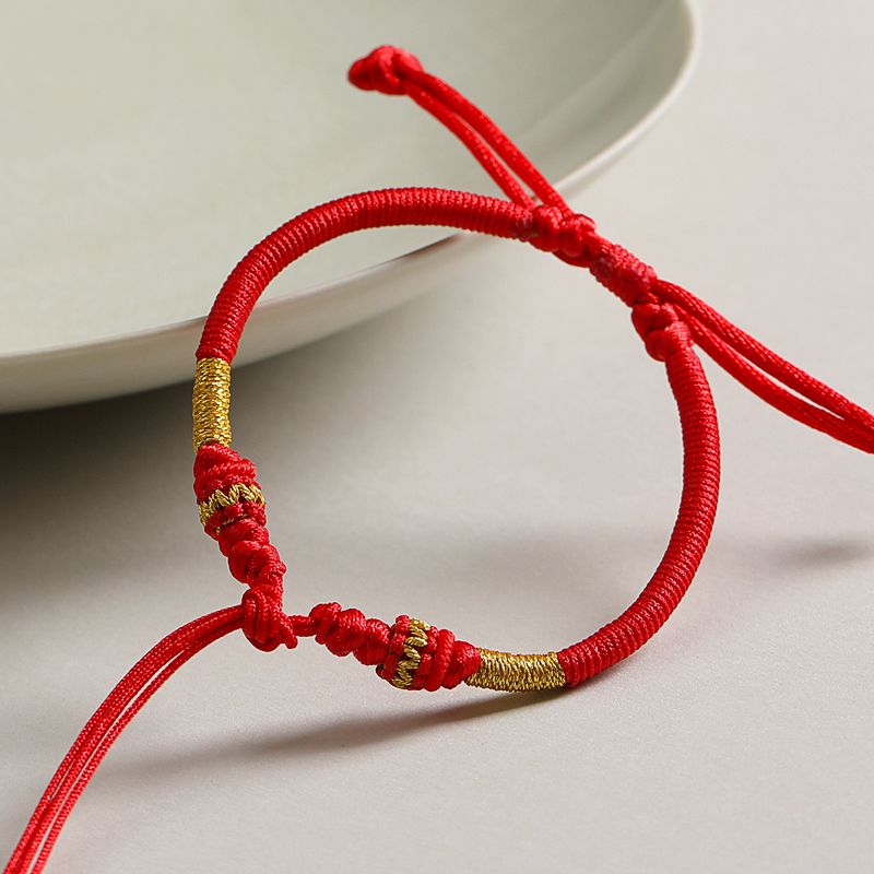 本命年红绳编织绳手绳半成品手链女男DIY可穿珠黄金转运珠平安扣