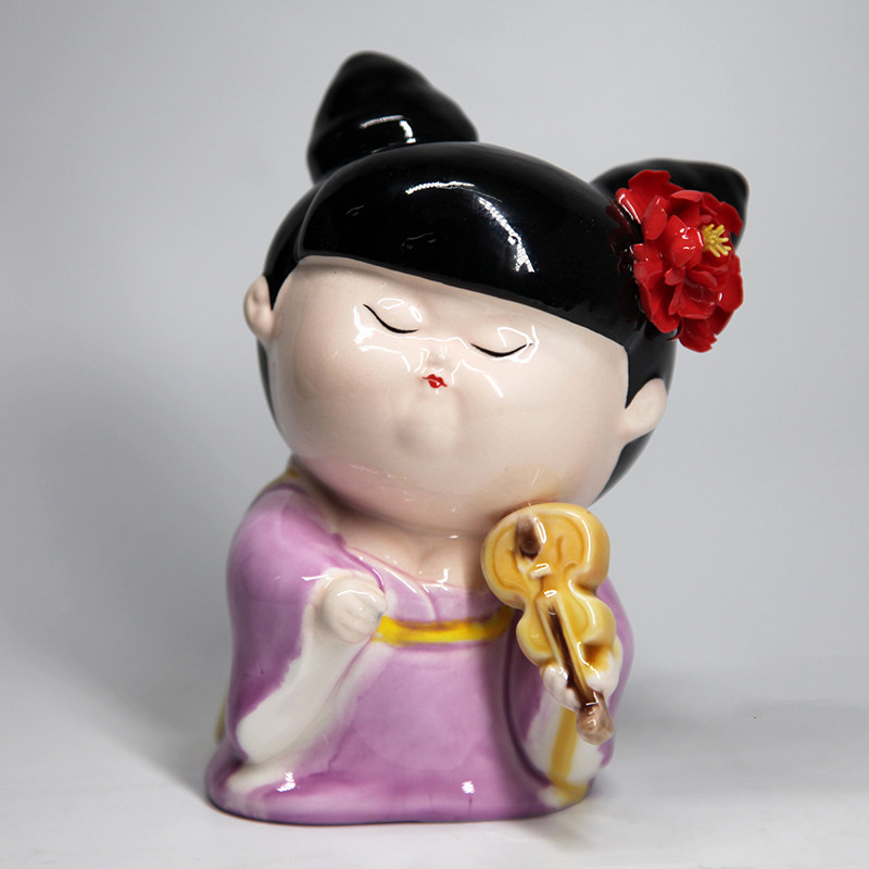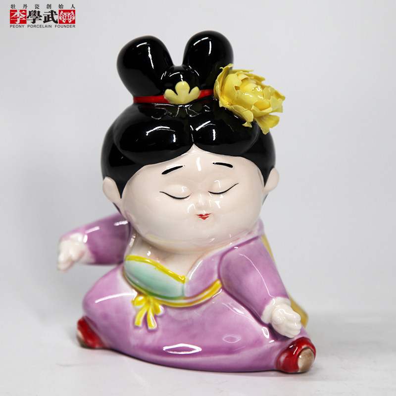洛阳李学武牡丹瓷陶瓷唐仕女妞妞公仔纯手工艺品创意太极人物摆件