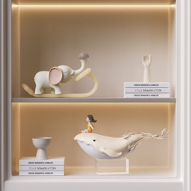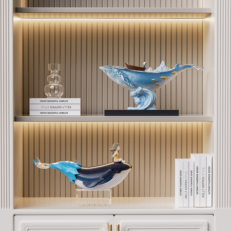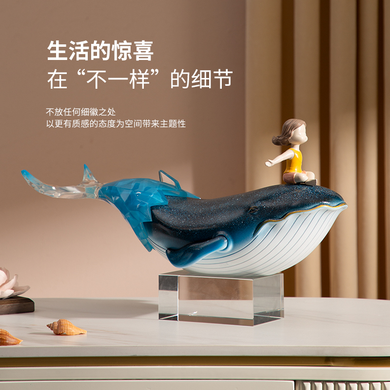 现代轻奢客厅儿童房酒柜装饰品北欧风创意家居艺术品树脂鲸鱼摆件