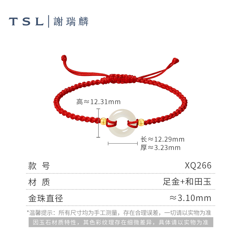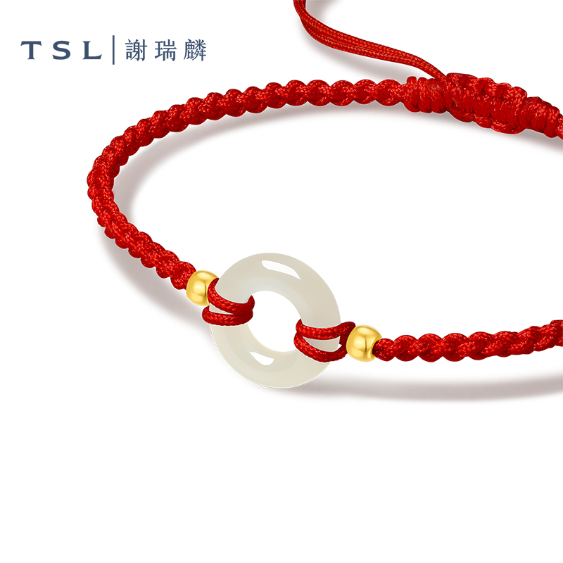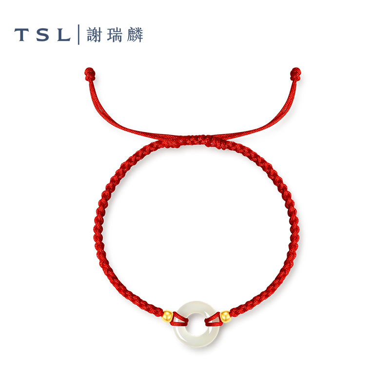 TSL谢瑞麟和田玉平安扣编织绳金珠手绳红绳新品XQ266
