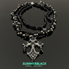 多层叠戴哥特风黑色串珠十字架项链女秋冬长款毛衣链高级感配饰