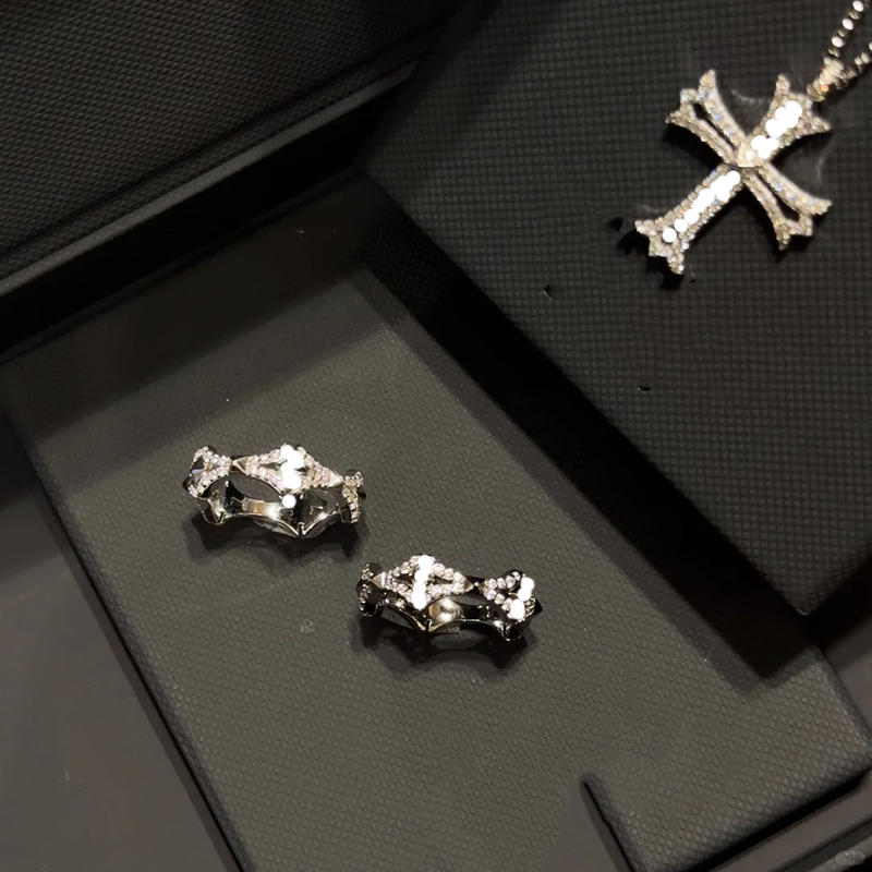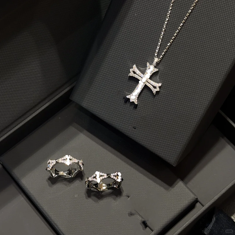 2025高版十字架项链戒指银白色镂空经典设计感摩登情侣项链送对象