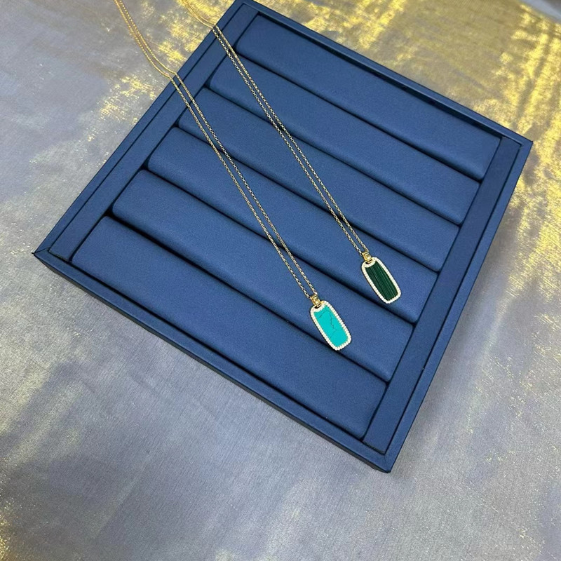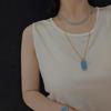 欧美s925纯银方形孔雀绿吊牌项链女轻奢百搭幸运石可调节锁骨链