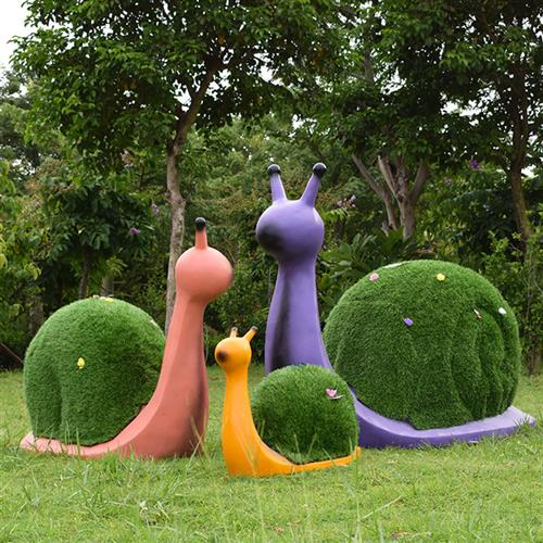 户外园林景观装饰摆件模拟动物卡通绿色植物蜗牛幼儿园公园玻璃纤