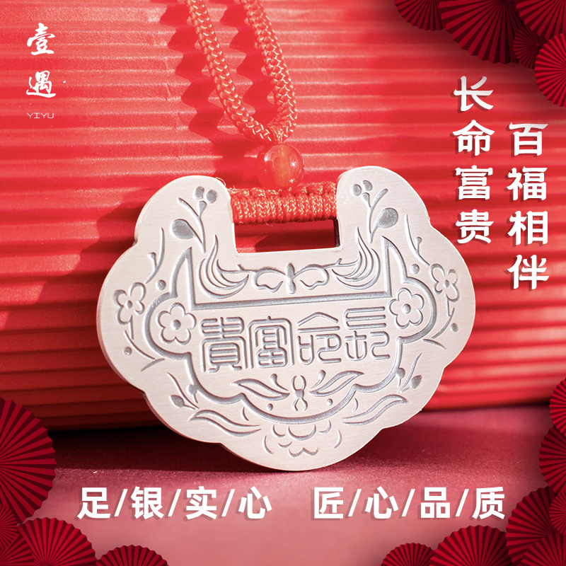 婴儿纯银999实心长命锁男女宝宝龙年手镯套装童首饰满月周岁礼物