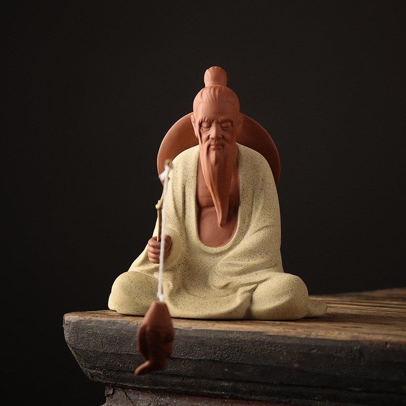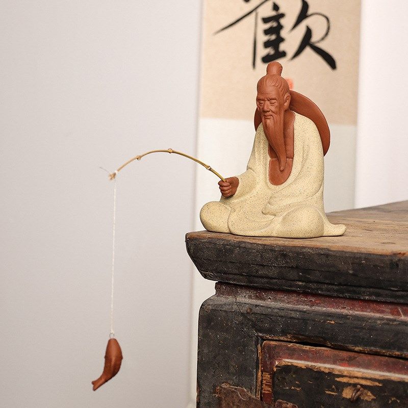 中式创意人物姜太公钓鱼陶瓷摆件客厅鱼缸水族布景假山造景装饰品