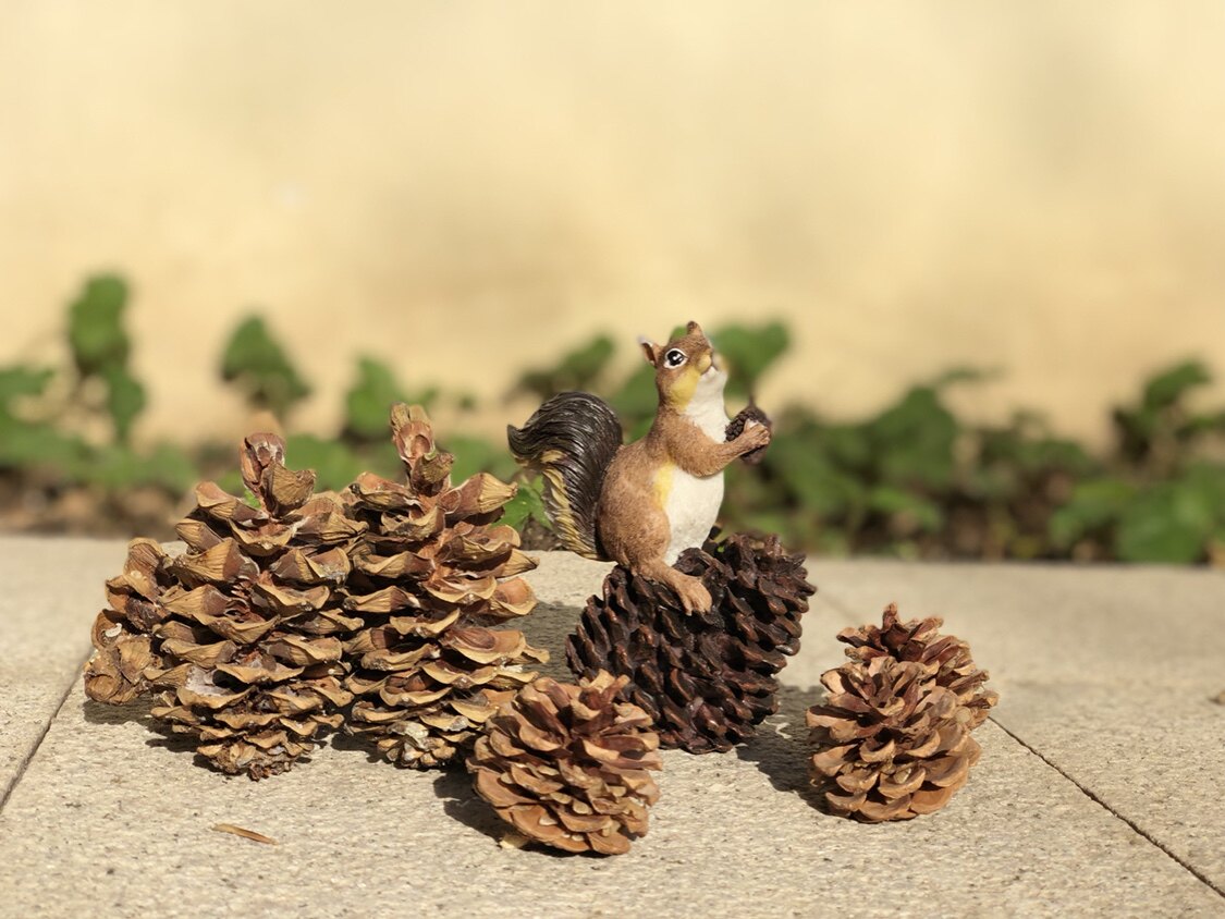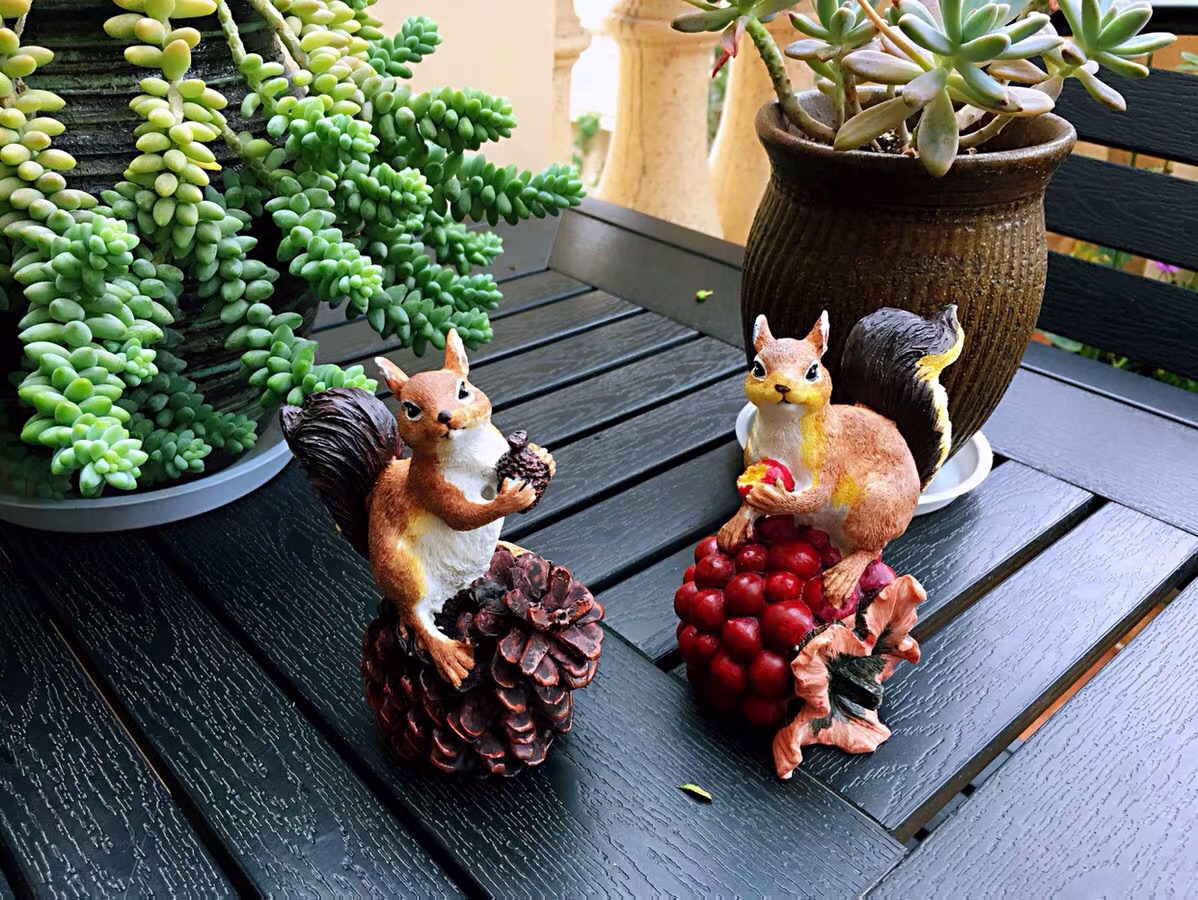 微瑕清 田园树脂工艺品装饰拍摄道具结婚礼物松果可爱小松鼠摆件