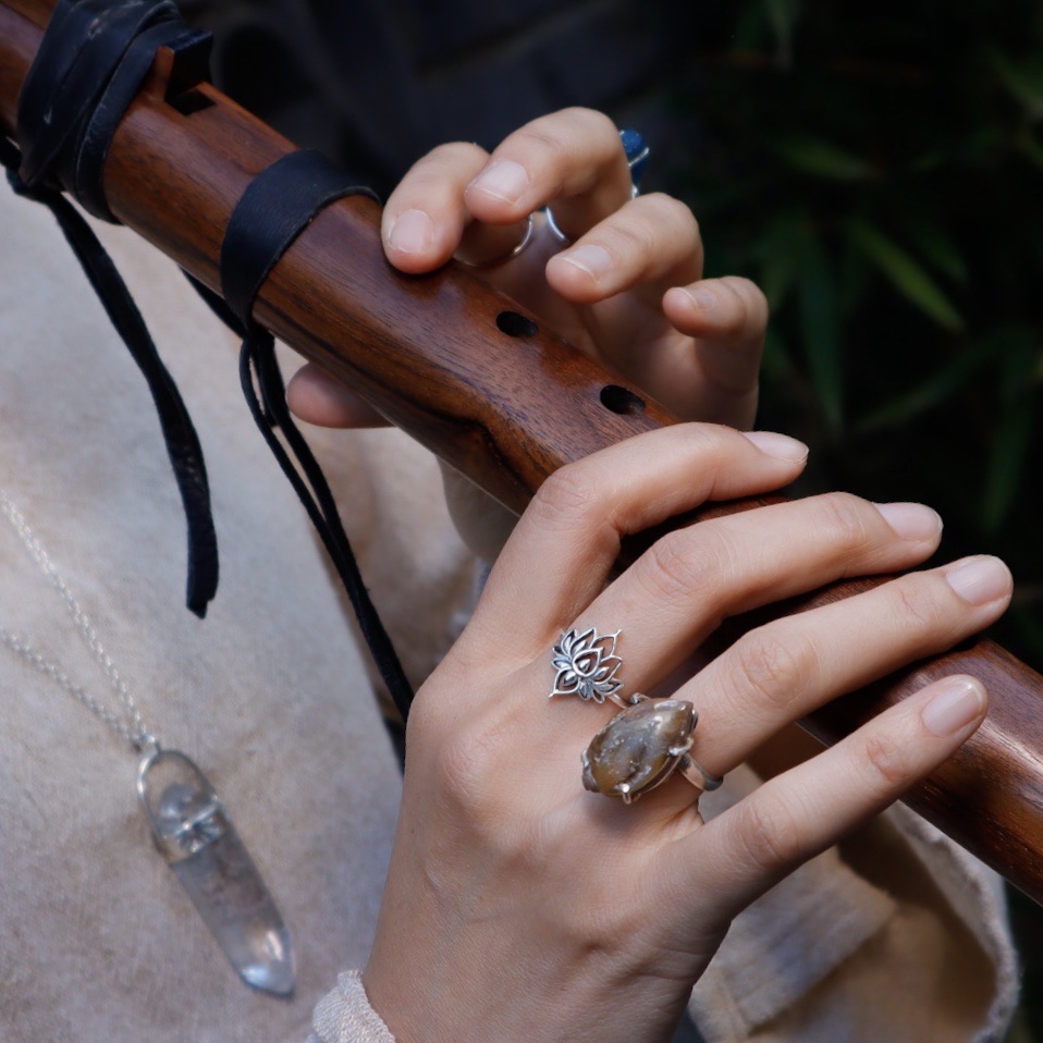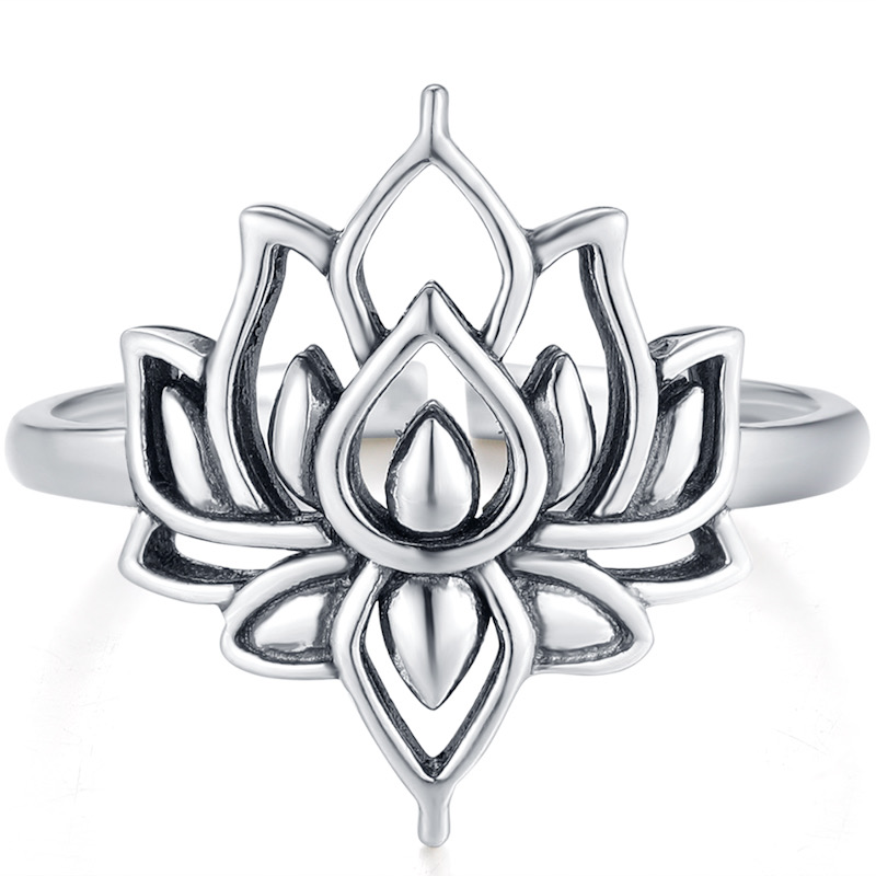925银活口戒指简约时尚个性莲花优雅复古禅意高级感纯银首饰礼物