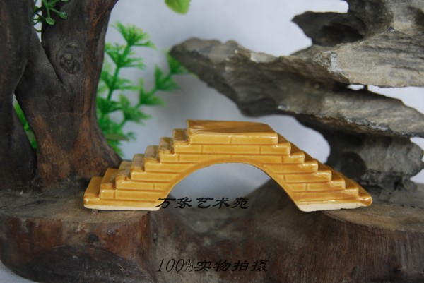 长8至20cm中国风石板桥行人小桥陶瓷摆件吸水石盆景鱼缸造景装饰