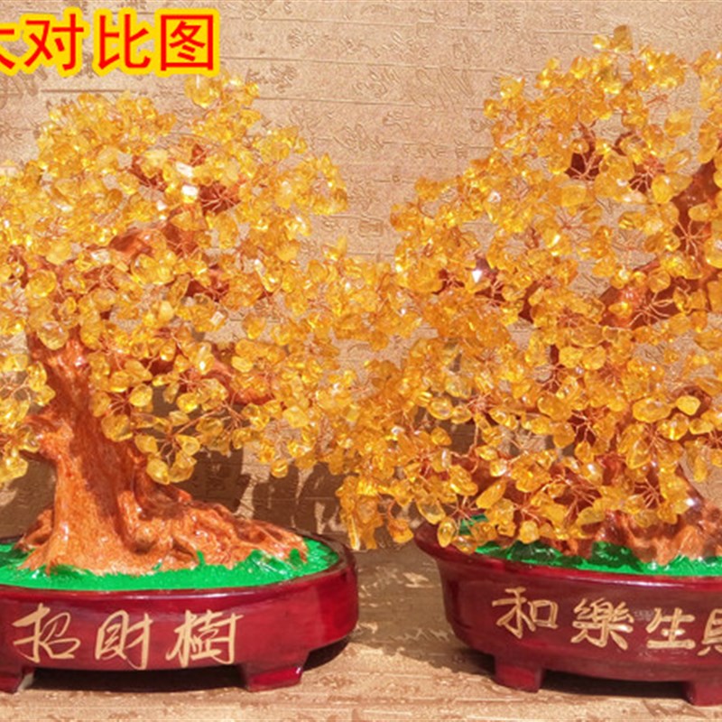 包邮黄水晶招财树摇钱树摆件 家居装饰品开业礼品电视柜客厅摆件