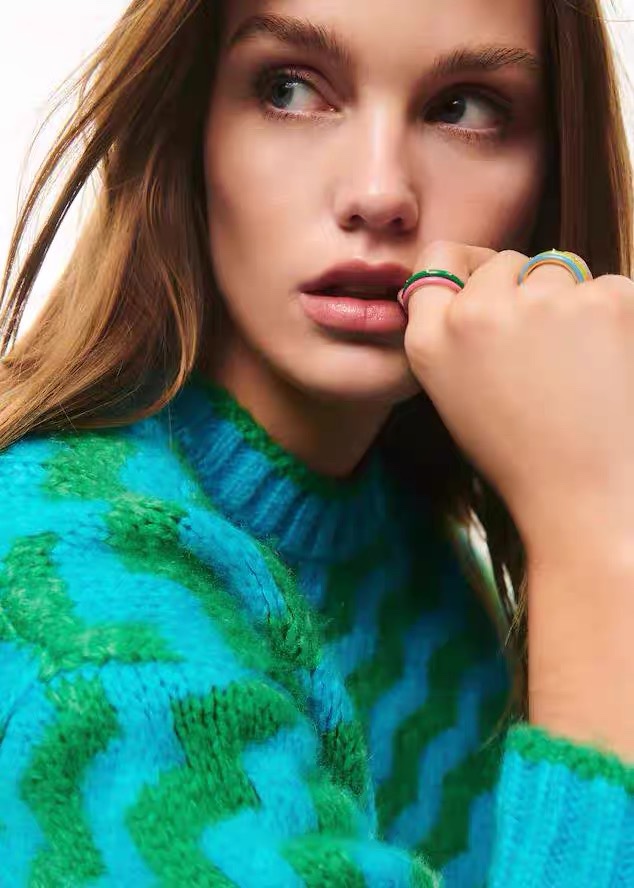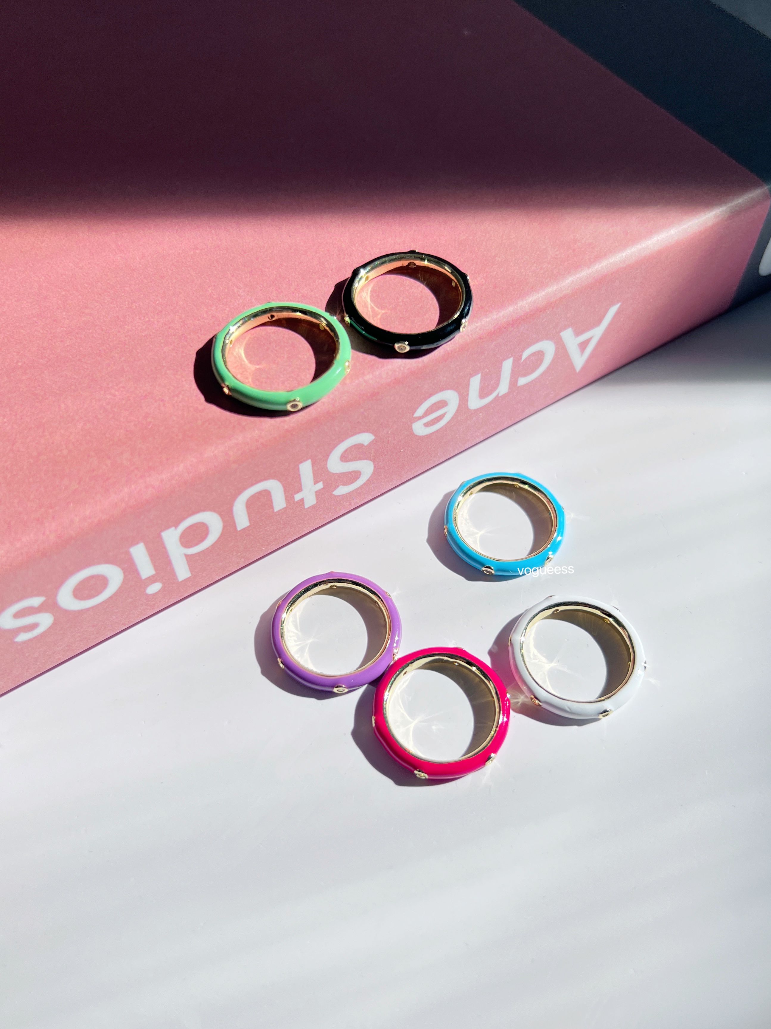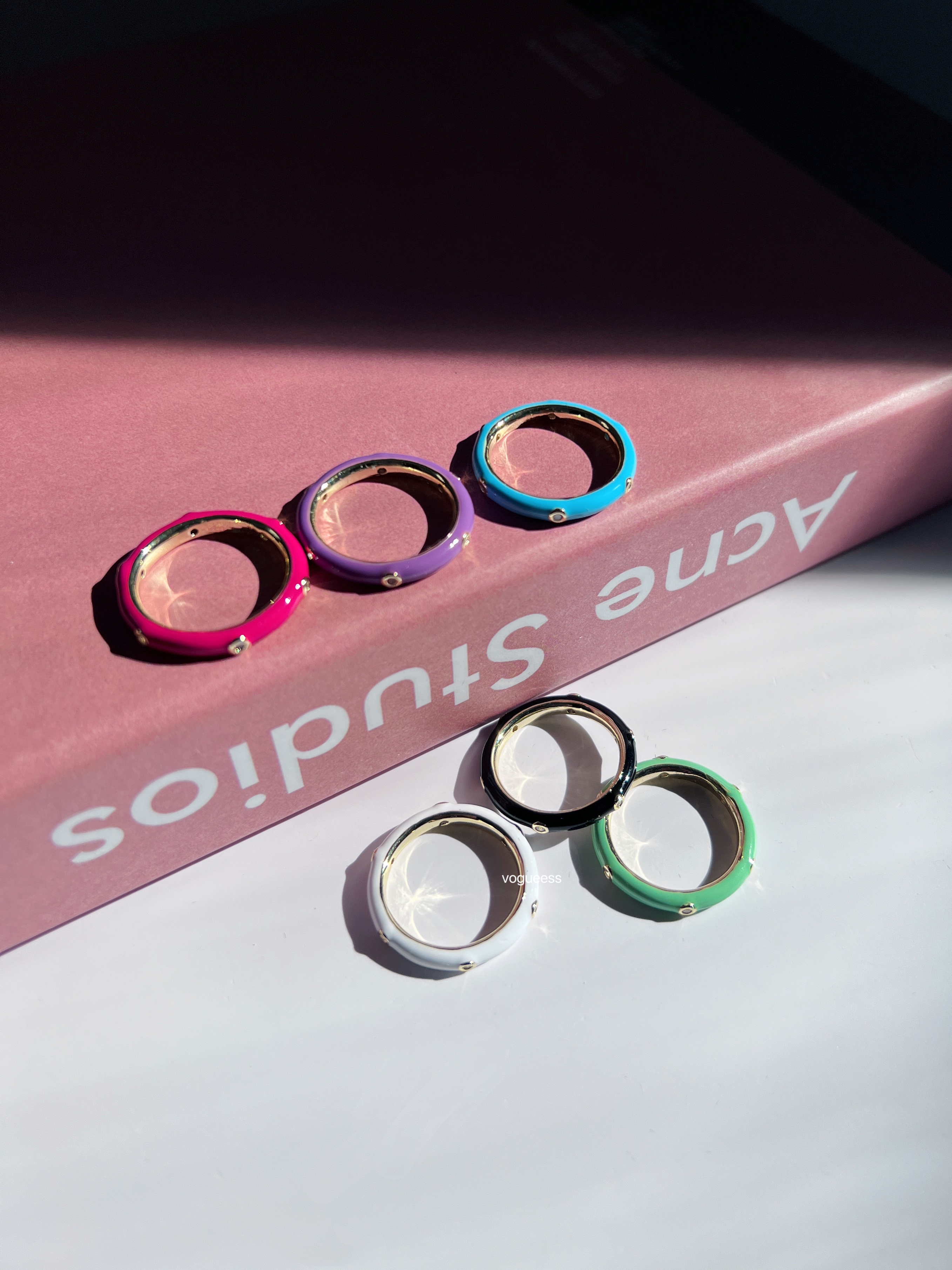 vogueess四季可带彩色油画戒指滴釉指环锆石点缀时髦穿搭配饰复古