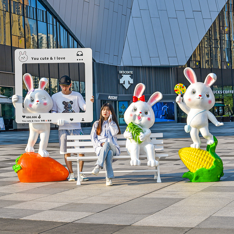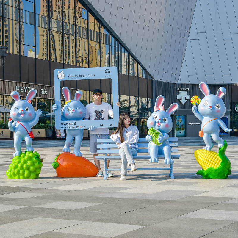 玻璃钢新年卡通兔子雕塑户外商广场美陈装饰品网红拍照落地大摆件