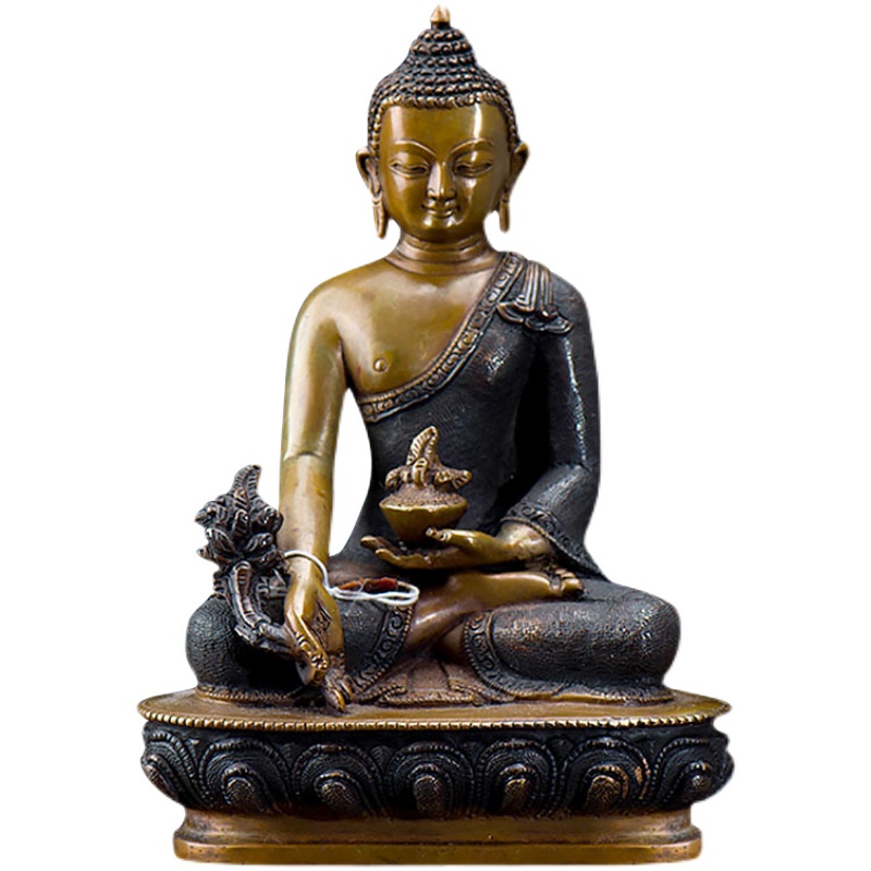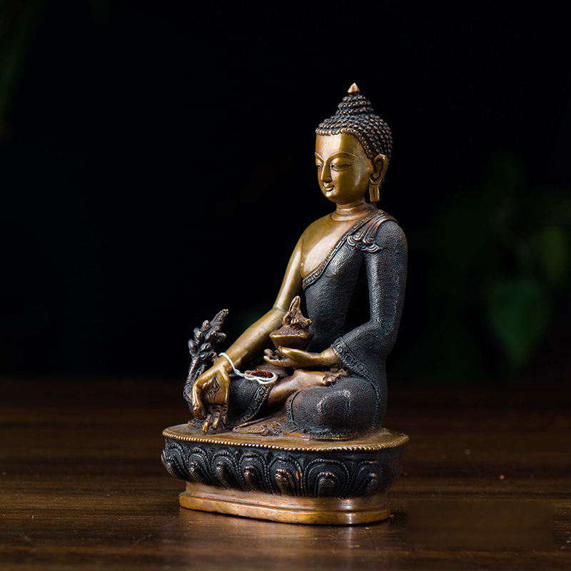药师佛尼泊尔手工青铜雕花5寸客厅玄关桌面铜三宝铜像摆件