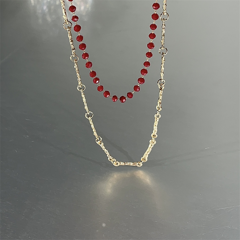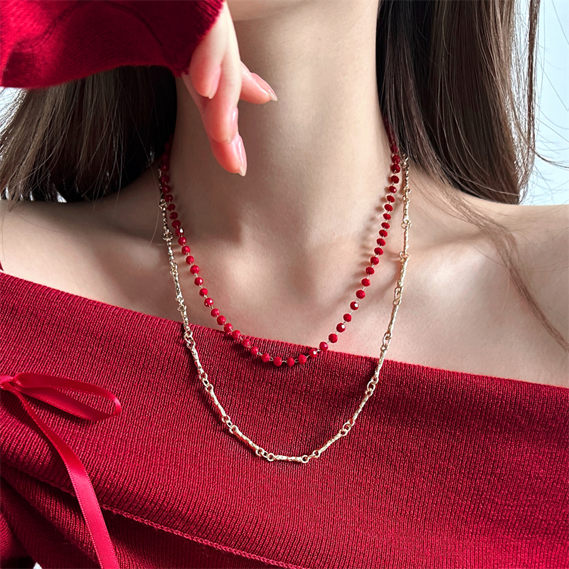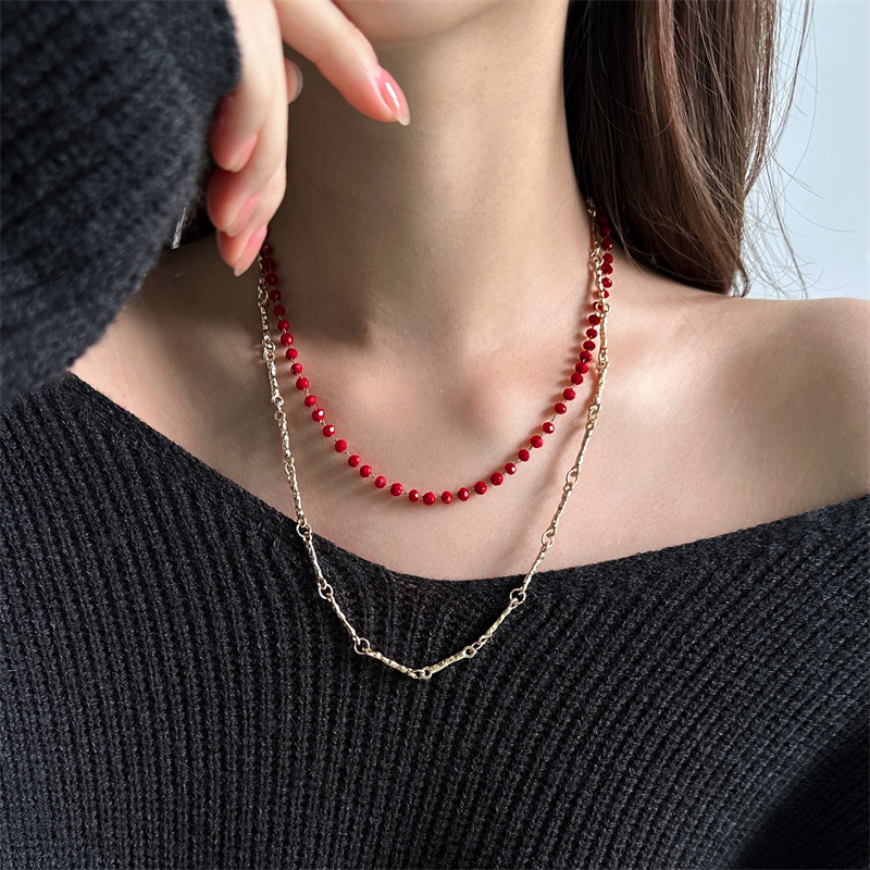 奢华高级设计感红色水晶串珠链条叠戴项链女时尚气质百搭锁骨链潮