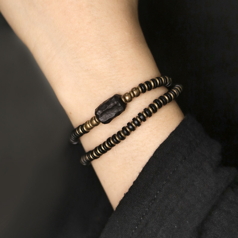 原创铜木珠混搭设计黑檀手链 复古个性潮流手饰品木质手串男女款
