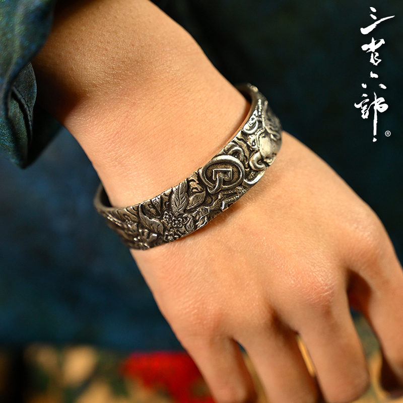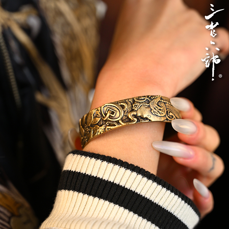 三省六部【蟾宫折桂】原创中国风设计联名款精雕纯铜纯银男女手镯