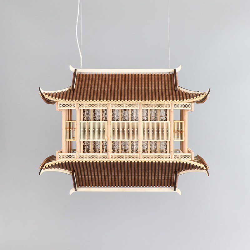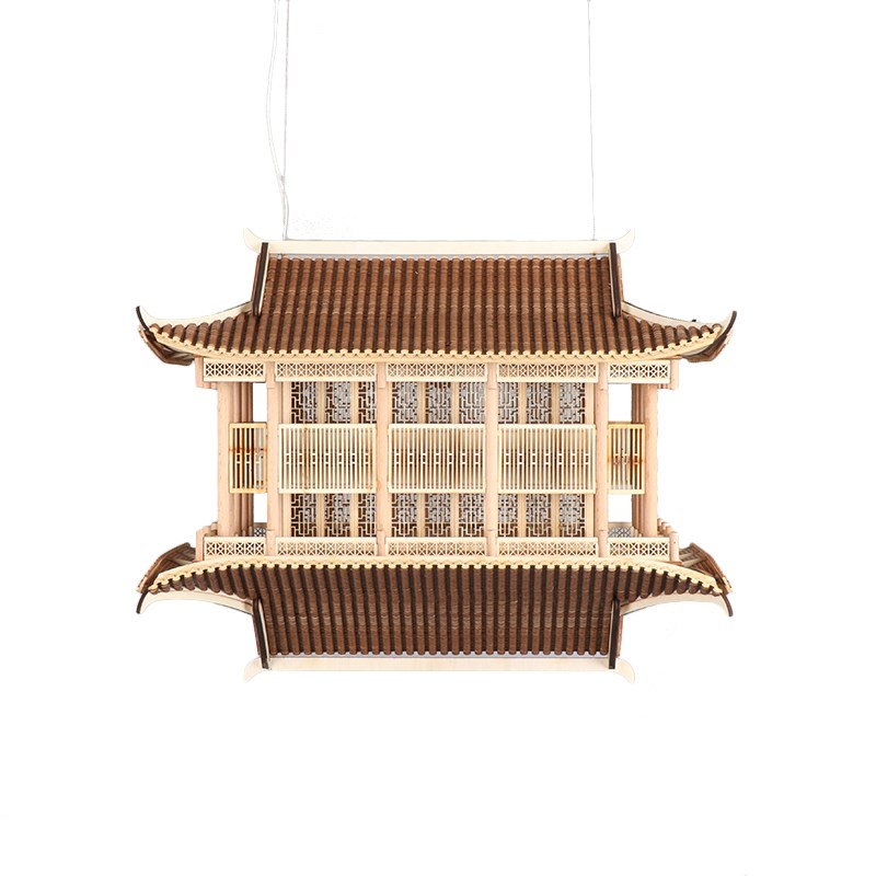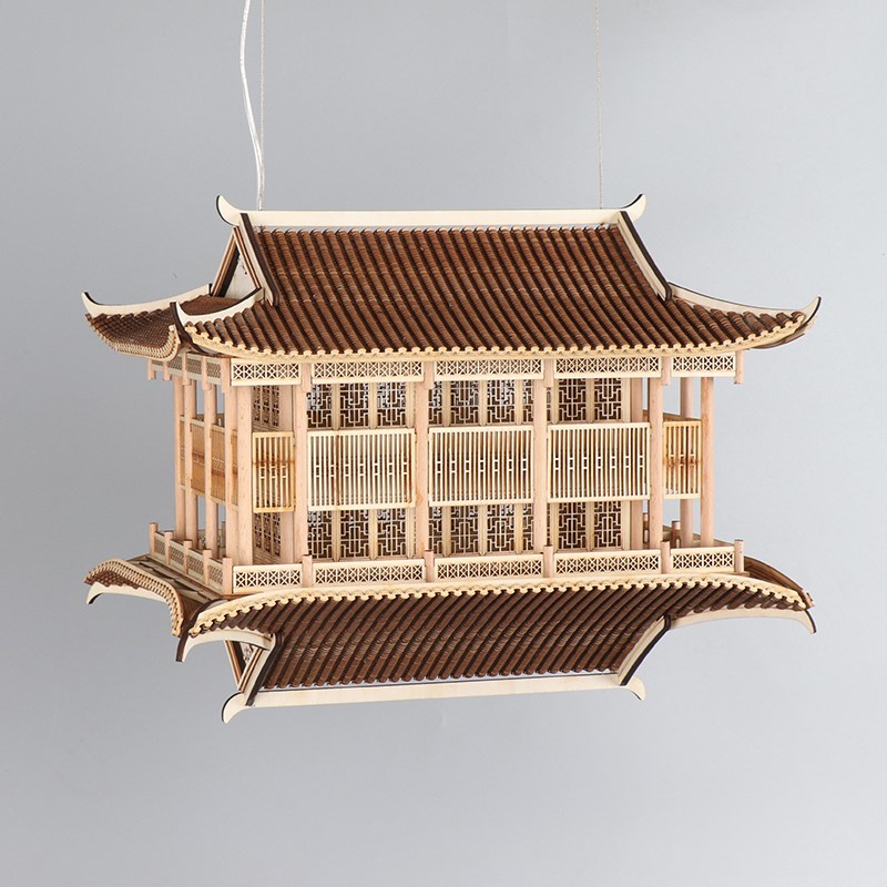 新中式中国风凉亭成品客厅酒店玄关吊灯装饰镜像R古建筑模型软饰