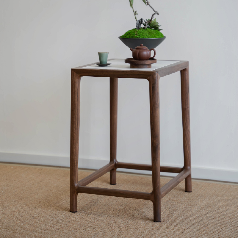 九间房岩板边几黑胡桃木实木新中式阳台沙发茶几角几花架小边桌