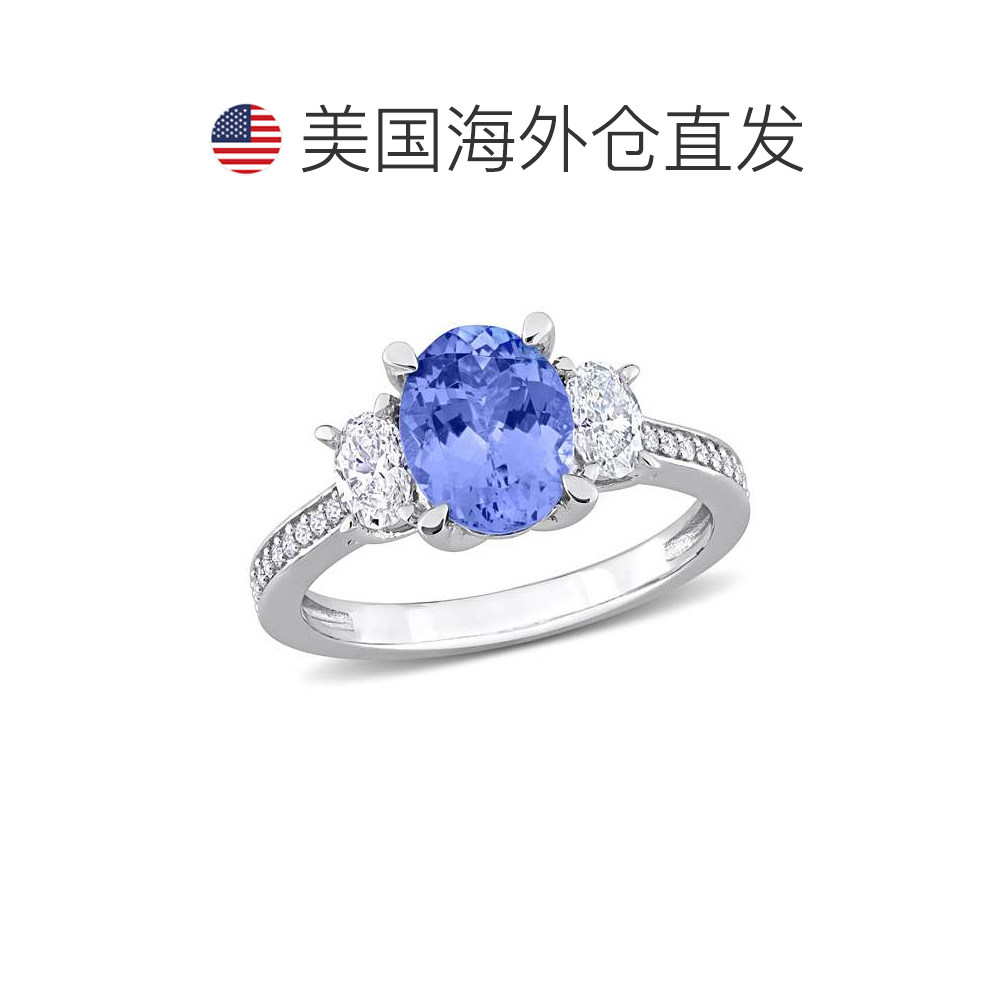 自营 Mimi & Max Oval Cut Tanzanite 5/8ct Diamond 3-Stone Rin