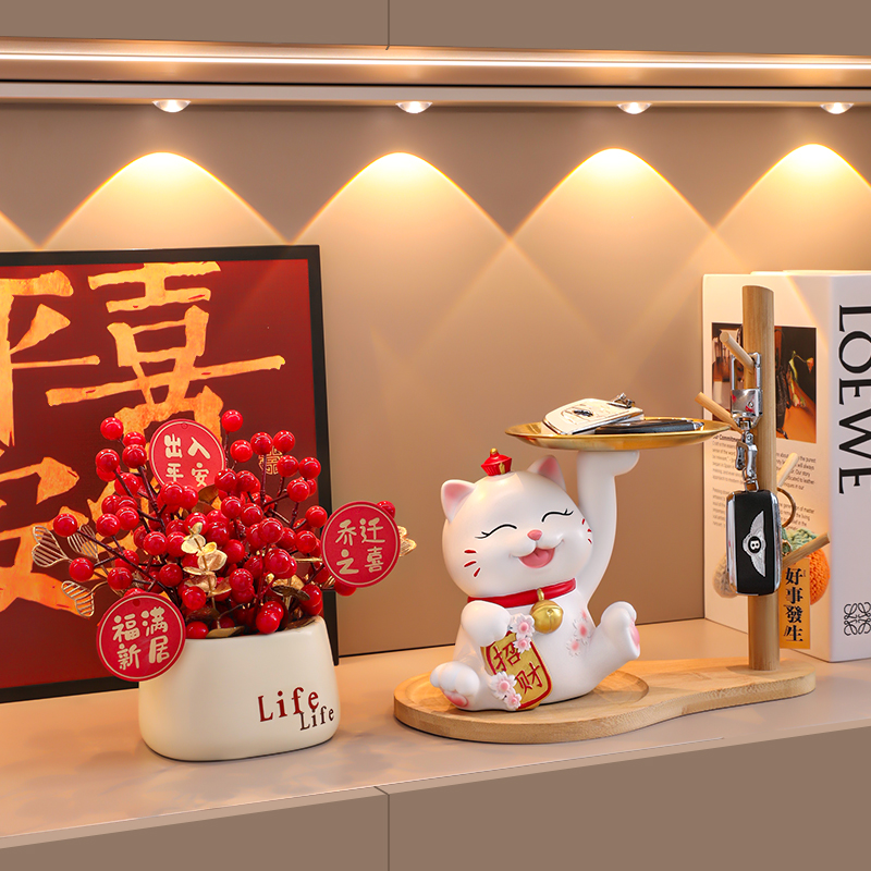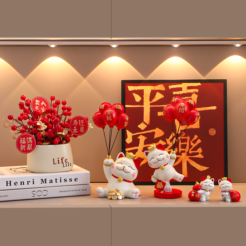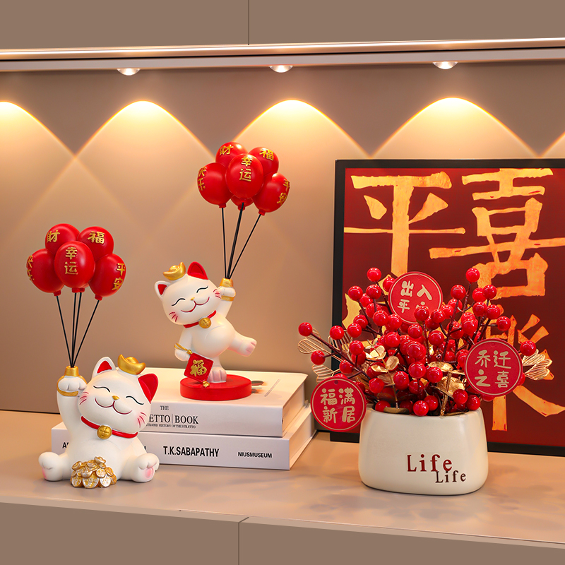 气球招财猫玄关桌面装饰品摆件家居饰品现代客厅福猫乔迁新居礼品