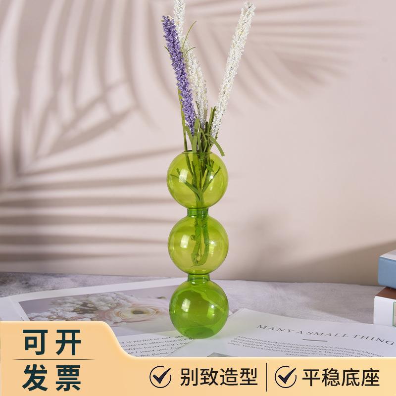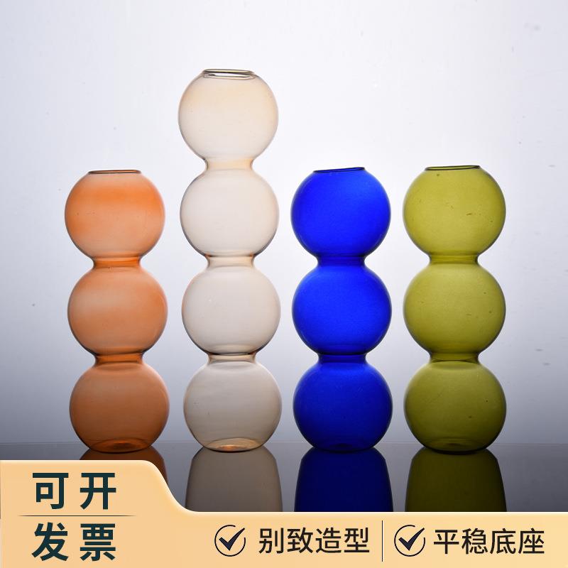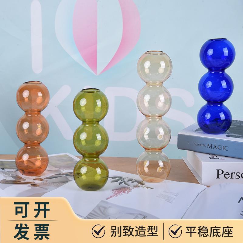 糖葫芦玻璃泡泡花瓶简约创意水培透明日系摆件彩色玻璃泡泡花瓶