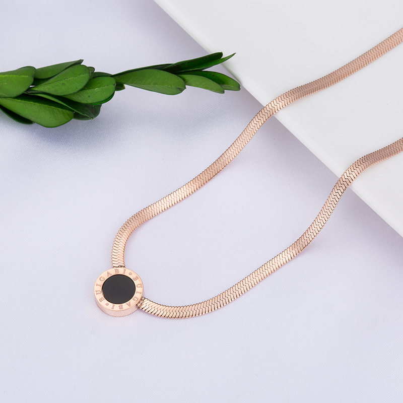 欧美钛钢罗马黑色圆牌项链女 时尚轻奢蛇链短款锁骨链饰品