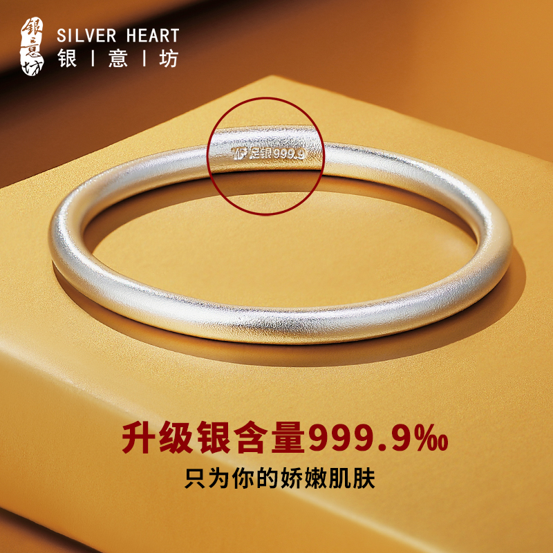 古法银手镯素圈实心款9999纯银镯子女款2025新款生日礼物女生实用