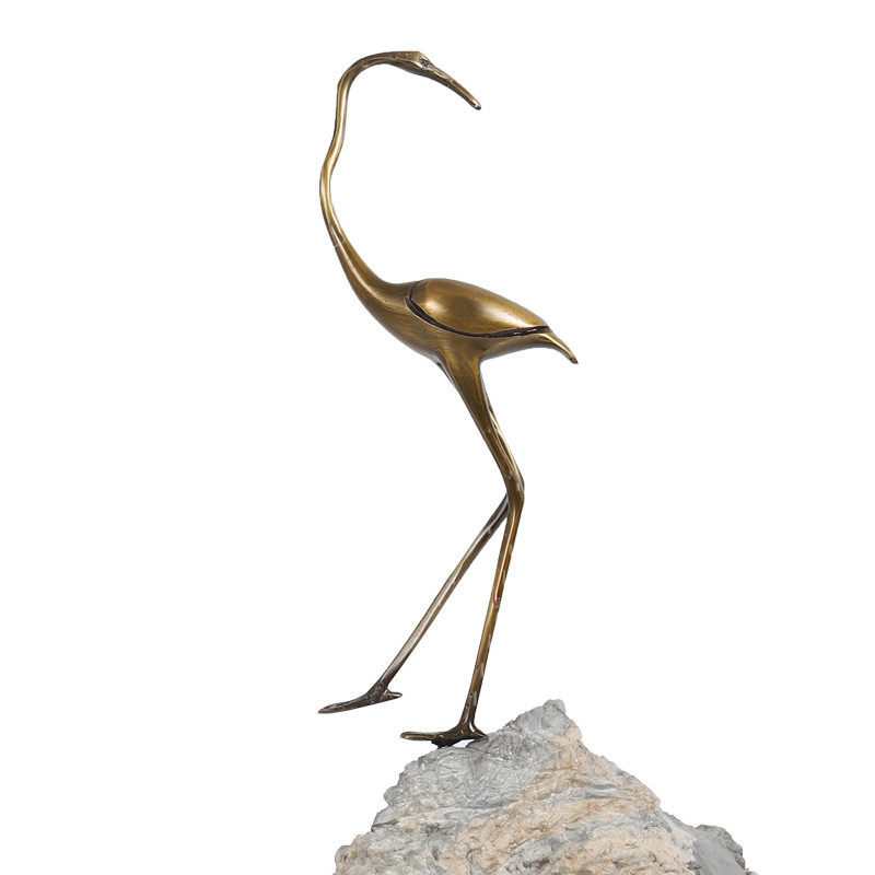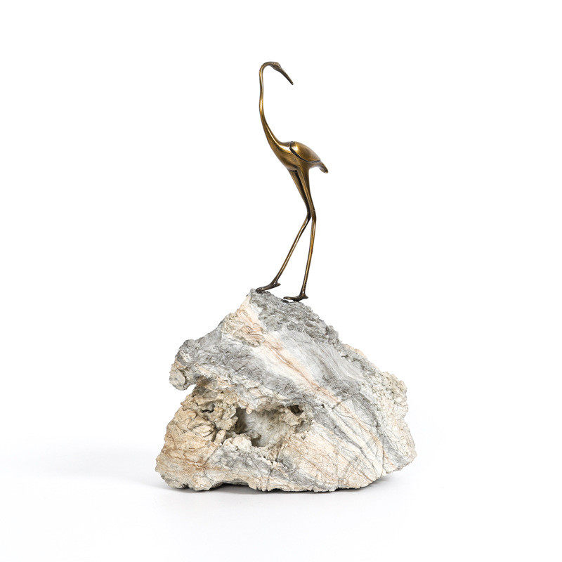 新中式现代简约假山顶鹤摆件创意动物台面软装树脂金属装饰摆件