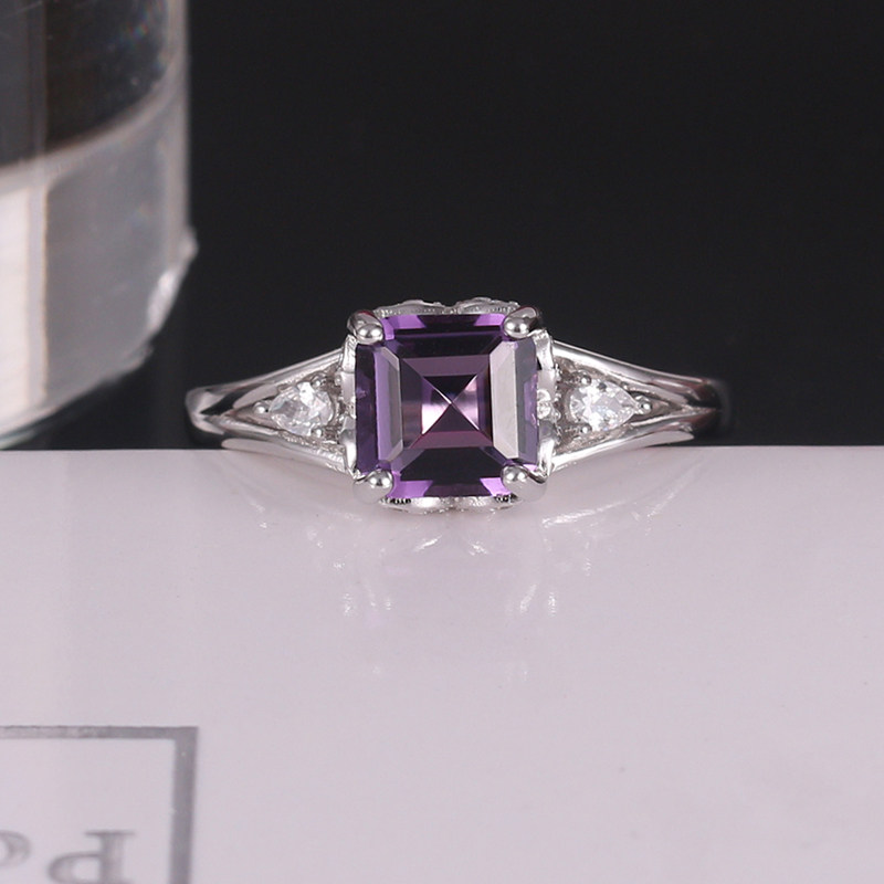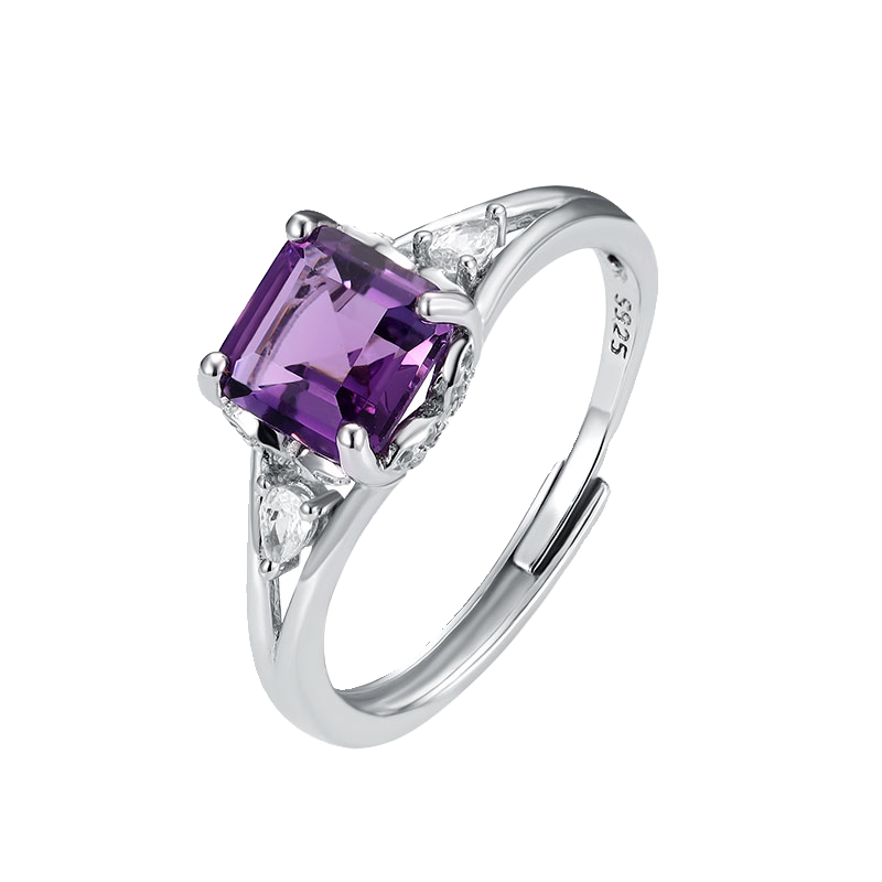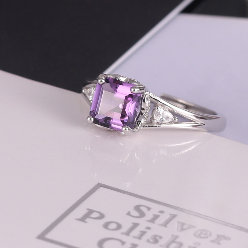 天然彩宝紫水晶戒指女s925银镶嵌紫宝石 日韩时尚指环开口可调节