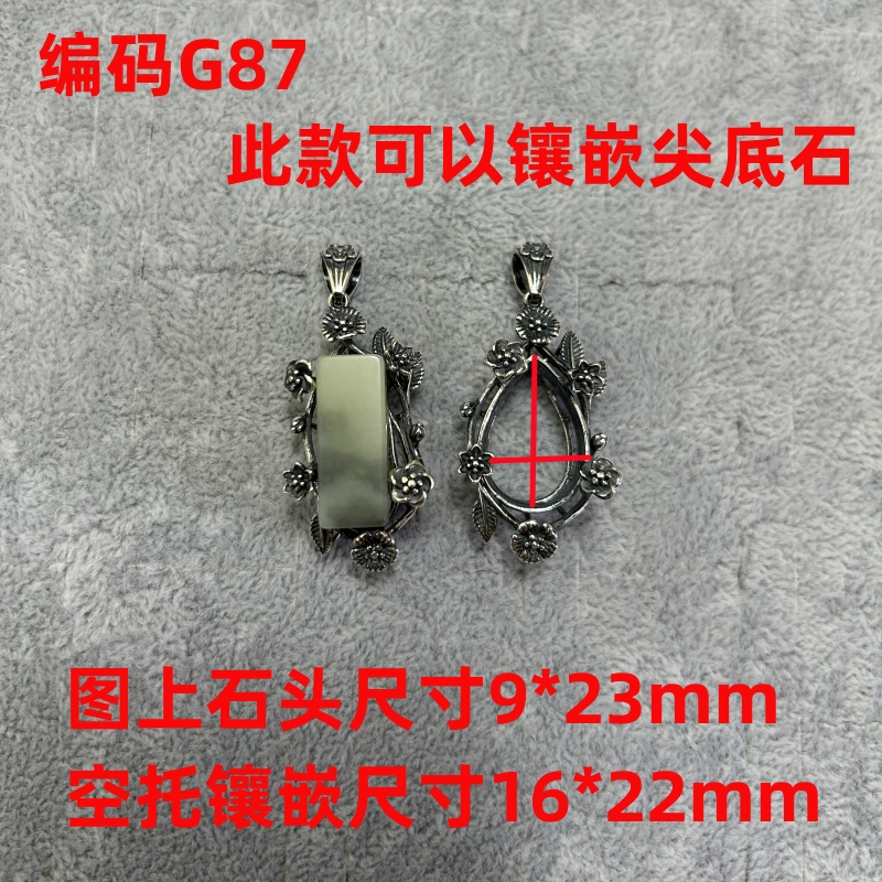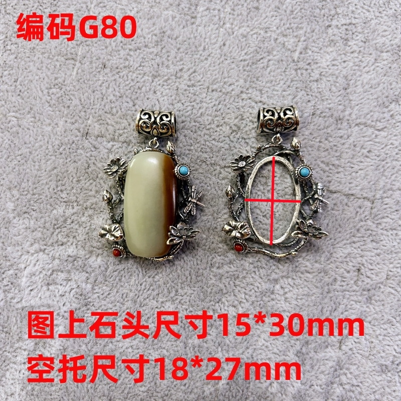 S925纯银宫廷复古做旧款绿松石蜜蜡和田玉男女士随形万能吊坠空托
