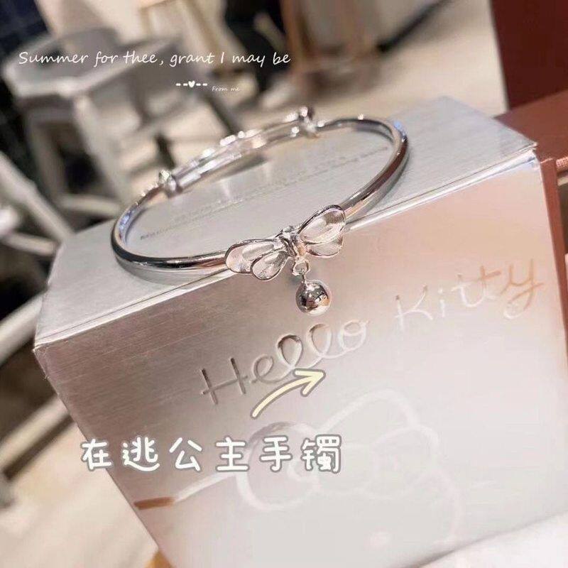 手镯学生银色蝴蝶结铃铛闺蜜手饰甜美小清新学生手环在逃公主礼物