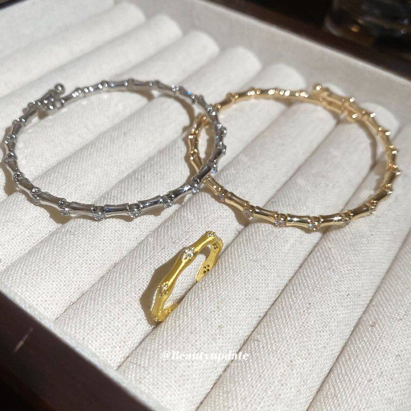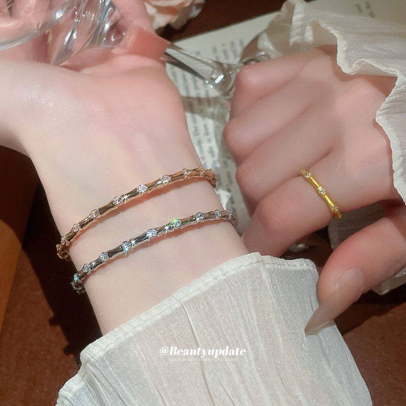 手镯女竹节气质时尚轻奢锆石跨境手饰简约欧美开口百搭高级感手环