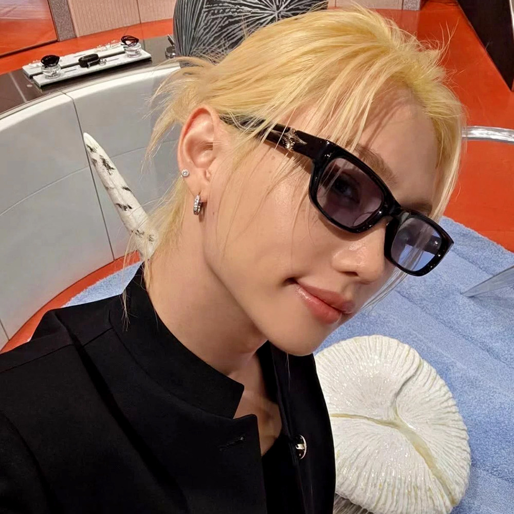 韩版复古方形窄框墨镜女高级感gm蓝色眼镜痞帅王安宇同款太阳镜男