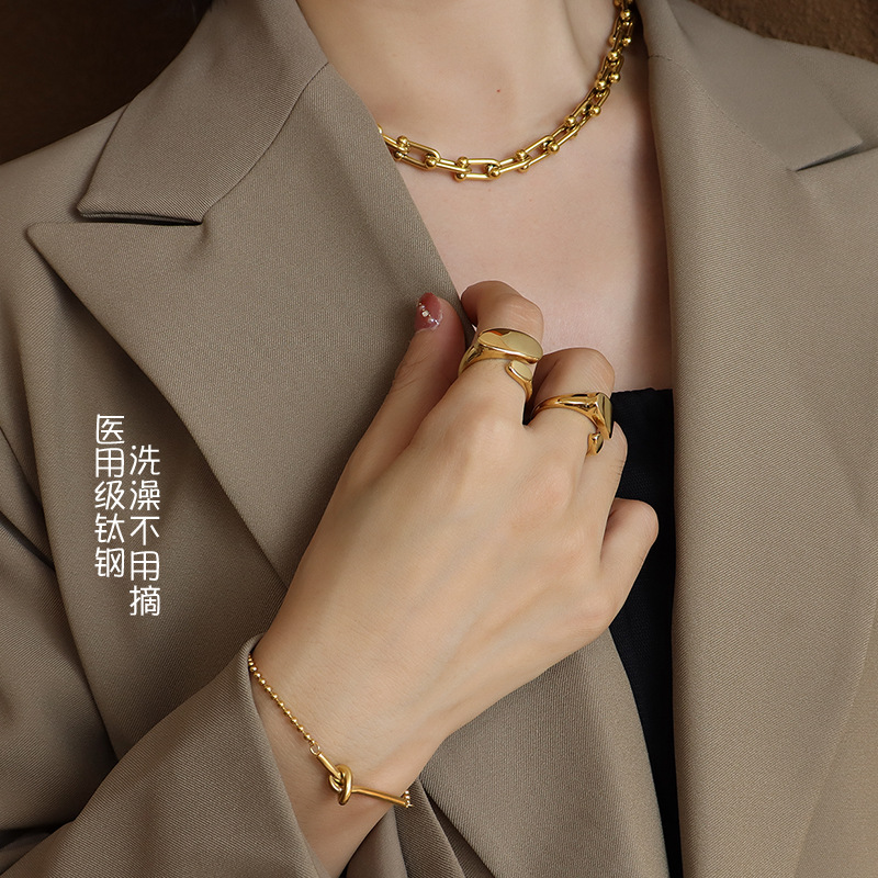 欧美风极简异形平面开口戒指钛钢18K金尾戒铸造工艺指环瑞丽饰品