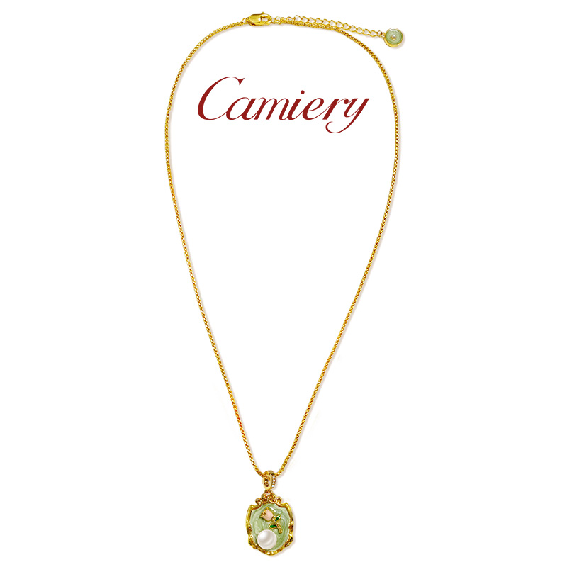 CAMIERY新款时尚项 油画风花朵珠珠项链女款高级感轻奢小众绝美