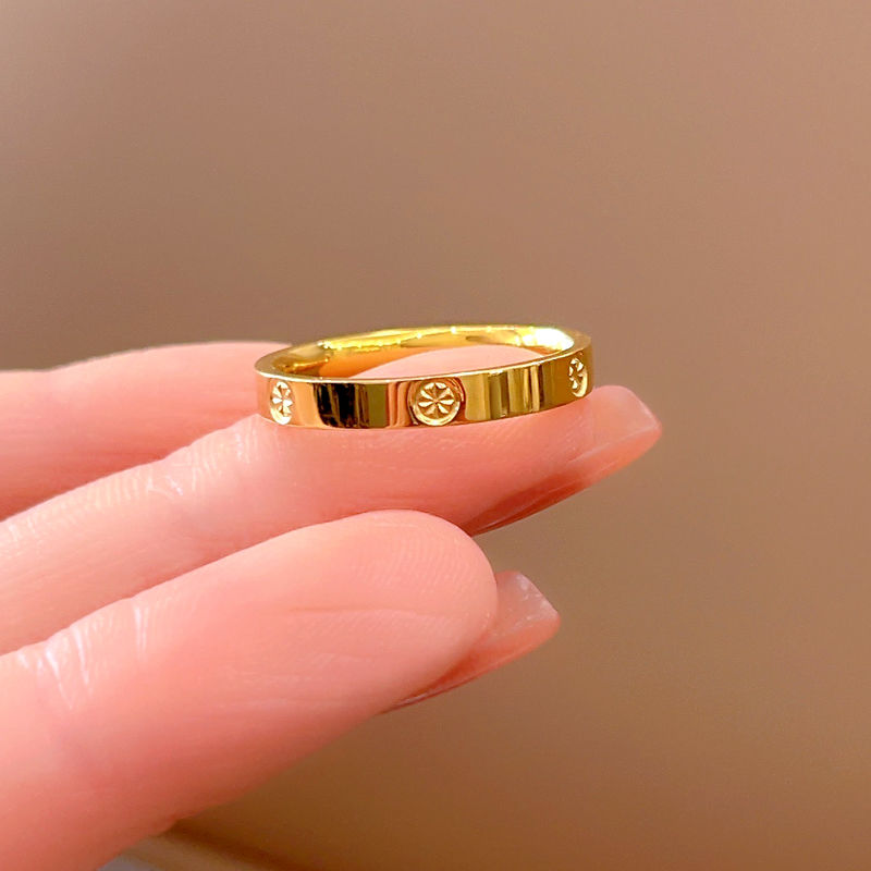 沙金钻纹米字戒指女ins小众设计情侣指环轻奢素圈食指戒指不掉色