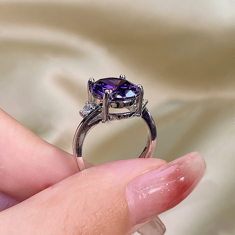 新款新款几何克拉人工锆石戒指感椭圆紫色绿色锆石开口指环饰品