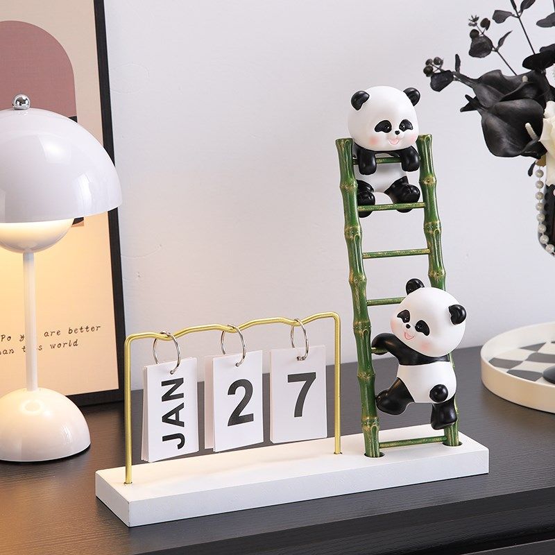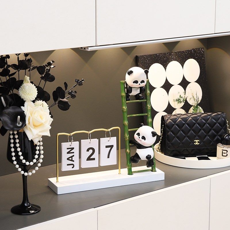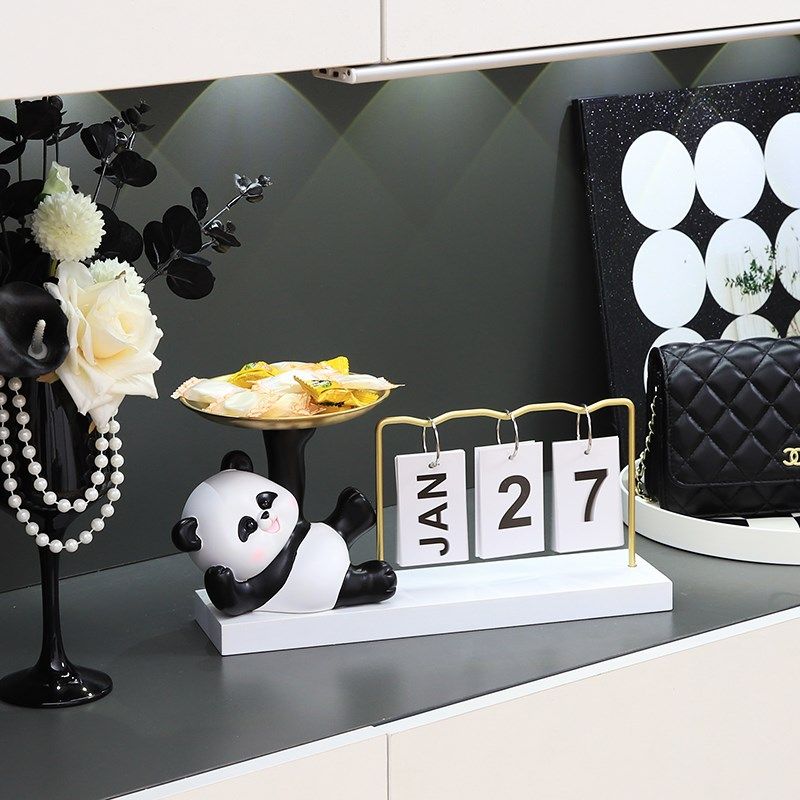速发可爱熊猫日视摆件高级感小玄客厅家居众关电历机酒柜设计师装