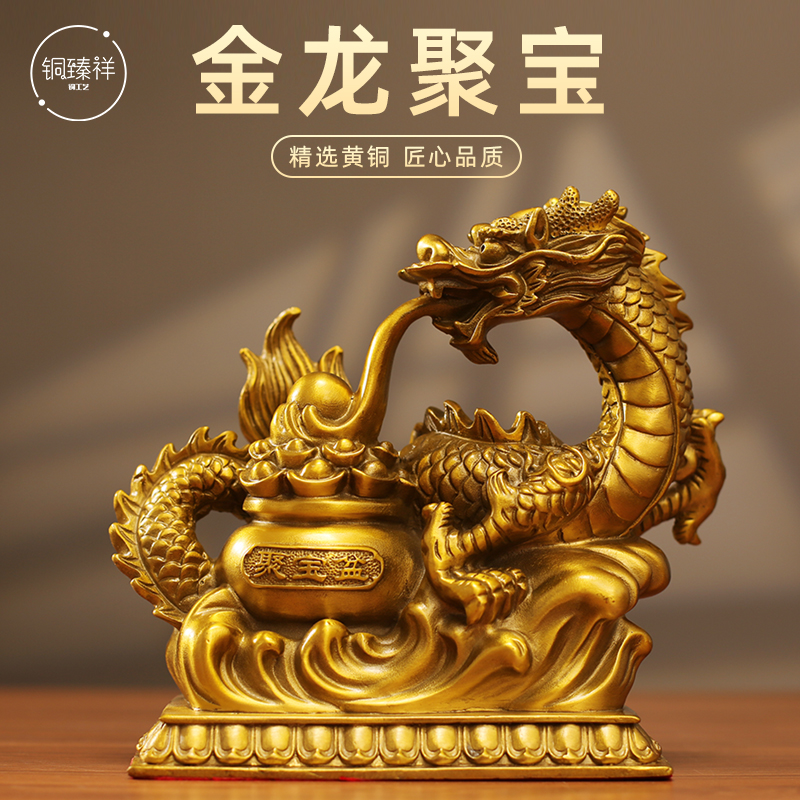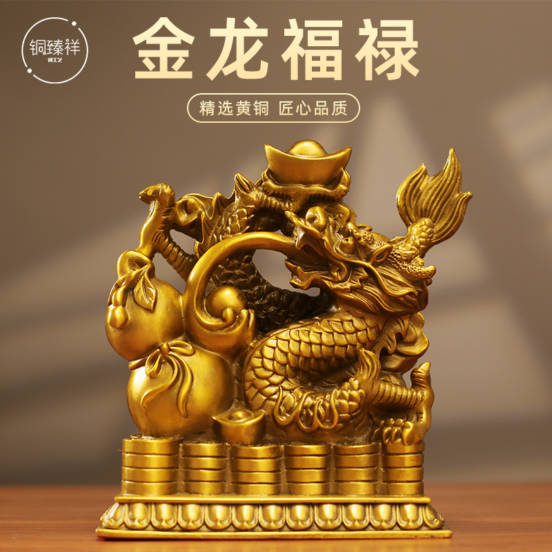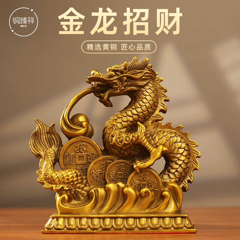 铜龙摆件黄铜生肖龙招财金龙工艺品办公桌装饰摆件客厅电视柜酒柜