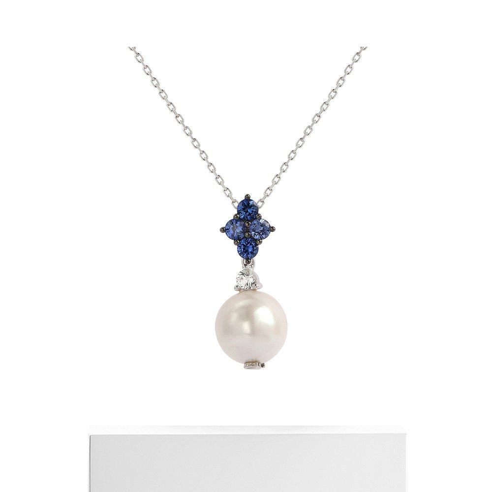 自营 Suzy Levian 纯银珍珠和蓝宝石簇状吊坠 - 蓝色 美国奥莱直