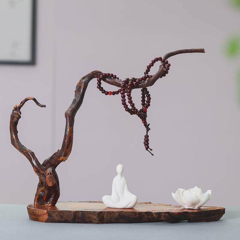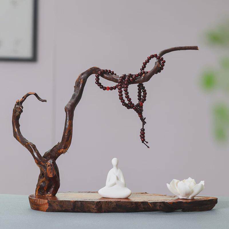 7wlo新中式禅意玄关工艺品风化木摆件茶室客厅电视柜根雕人物软
